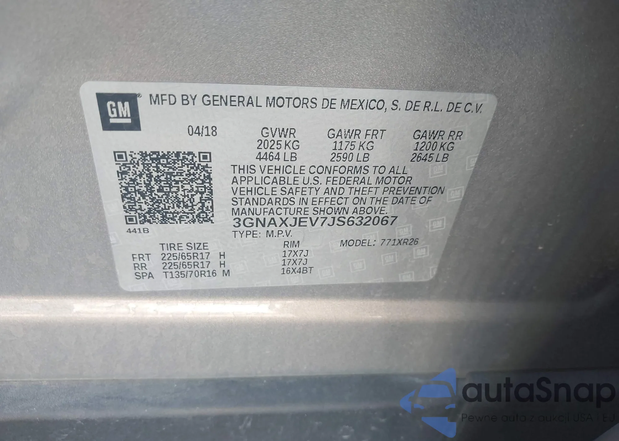 VIN: 3GNAXJEV7JS632067