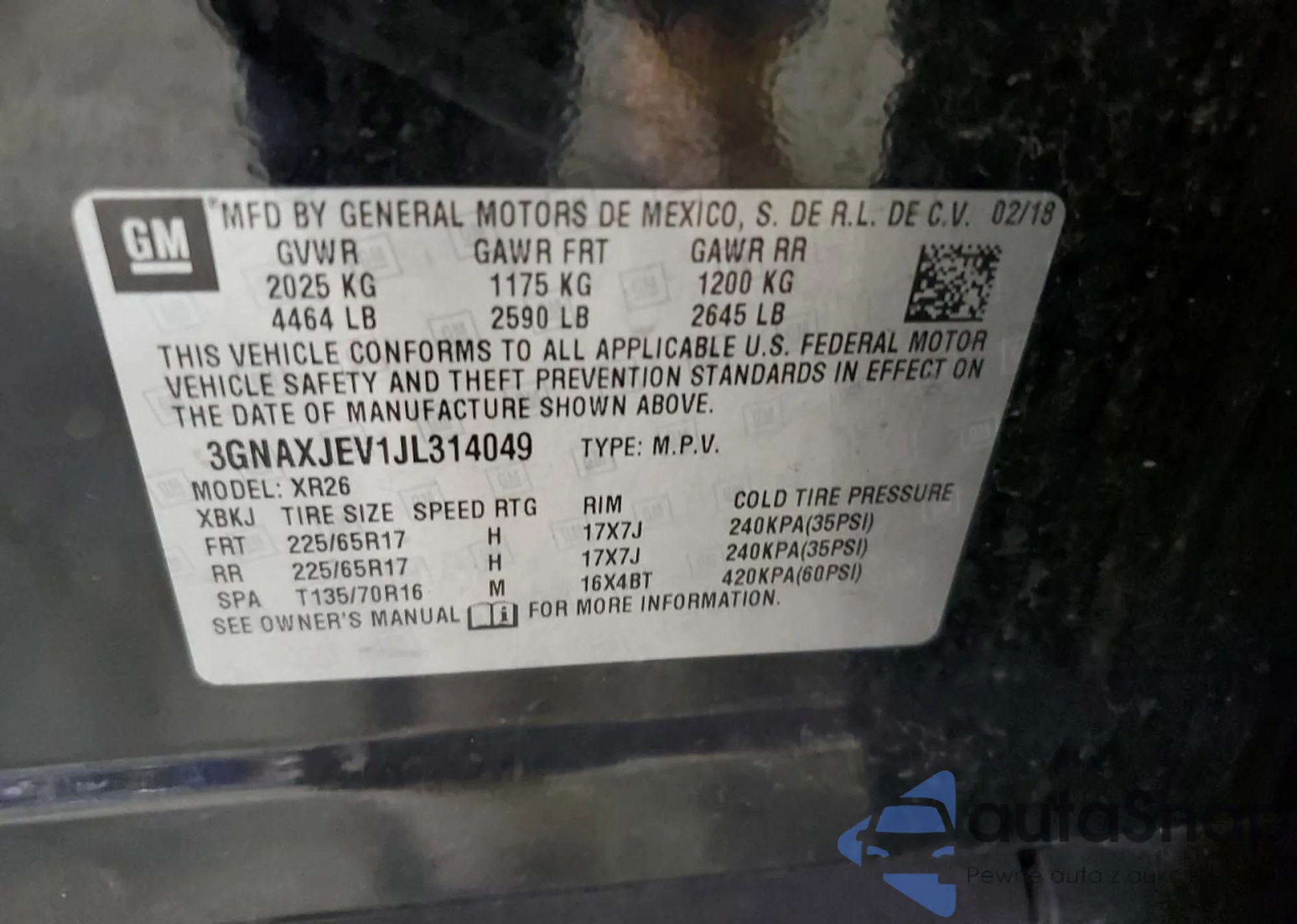 VIN: 3GNAXJEV1JL314049
