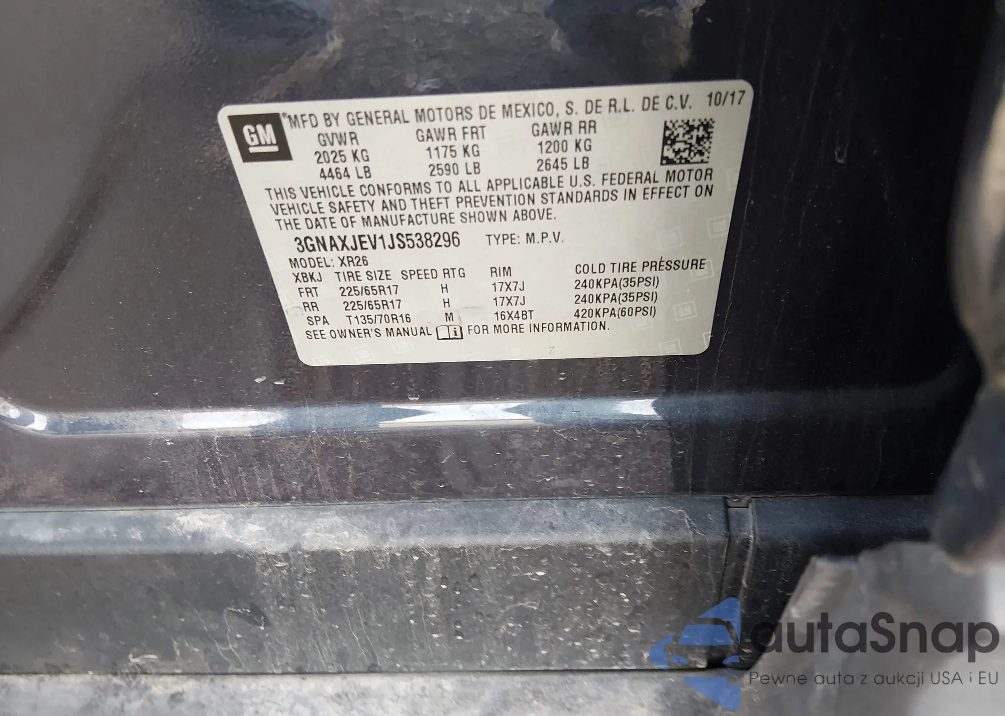VIN: 3GNAXJEV1JS538296