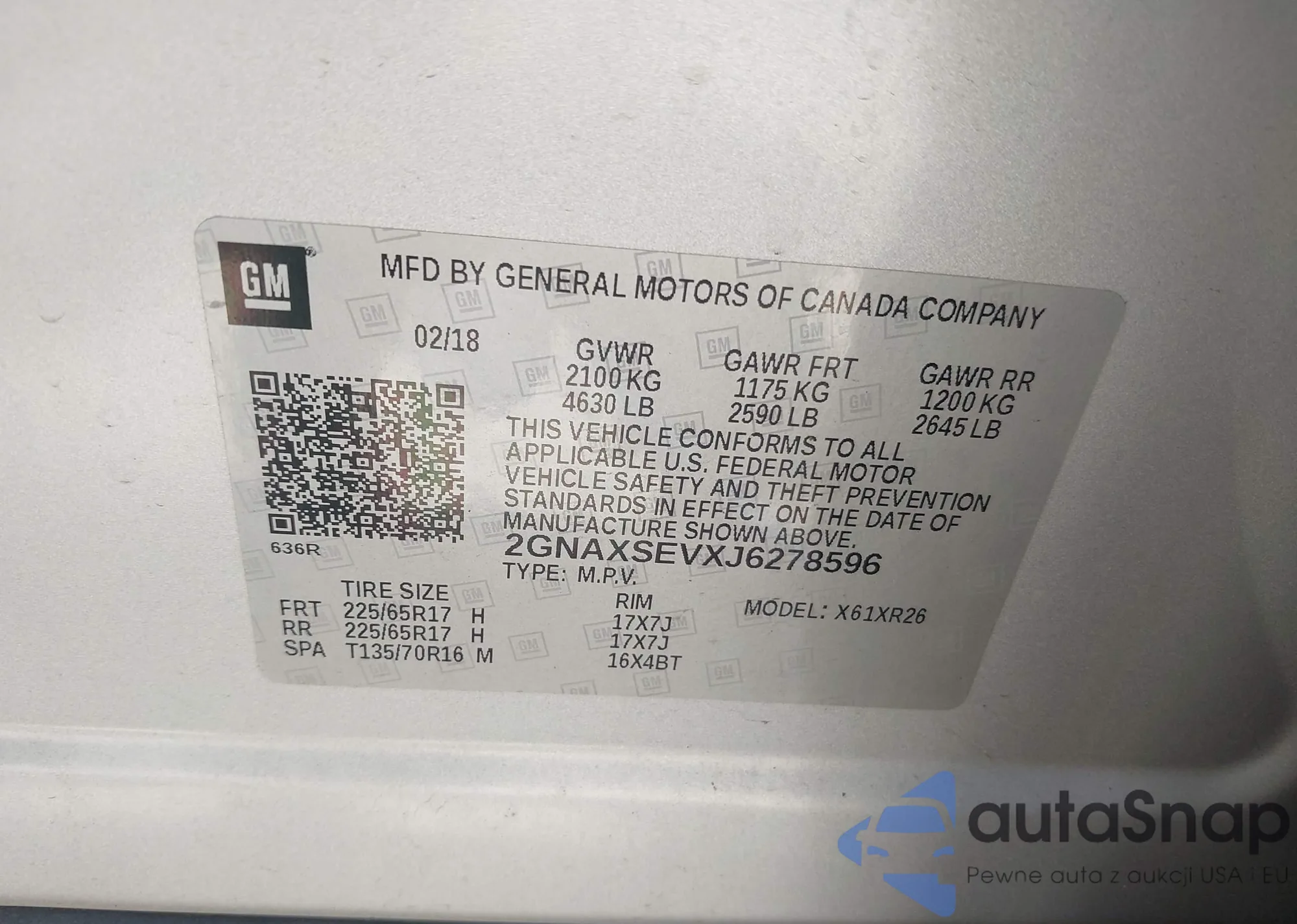 VIN: 2GNAXSEVXJ6278596