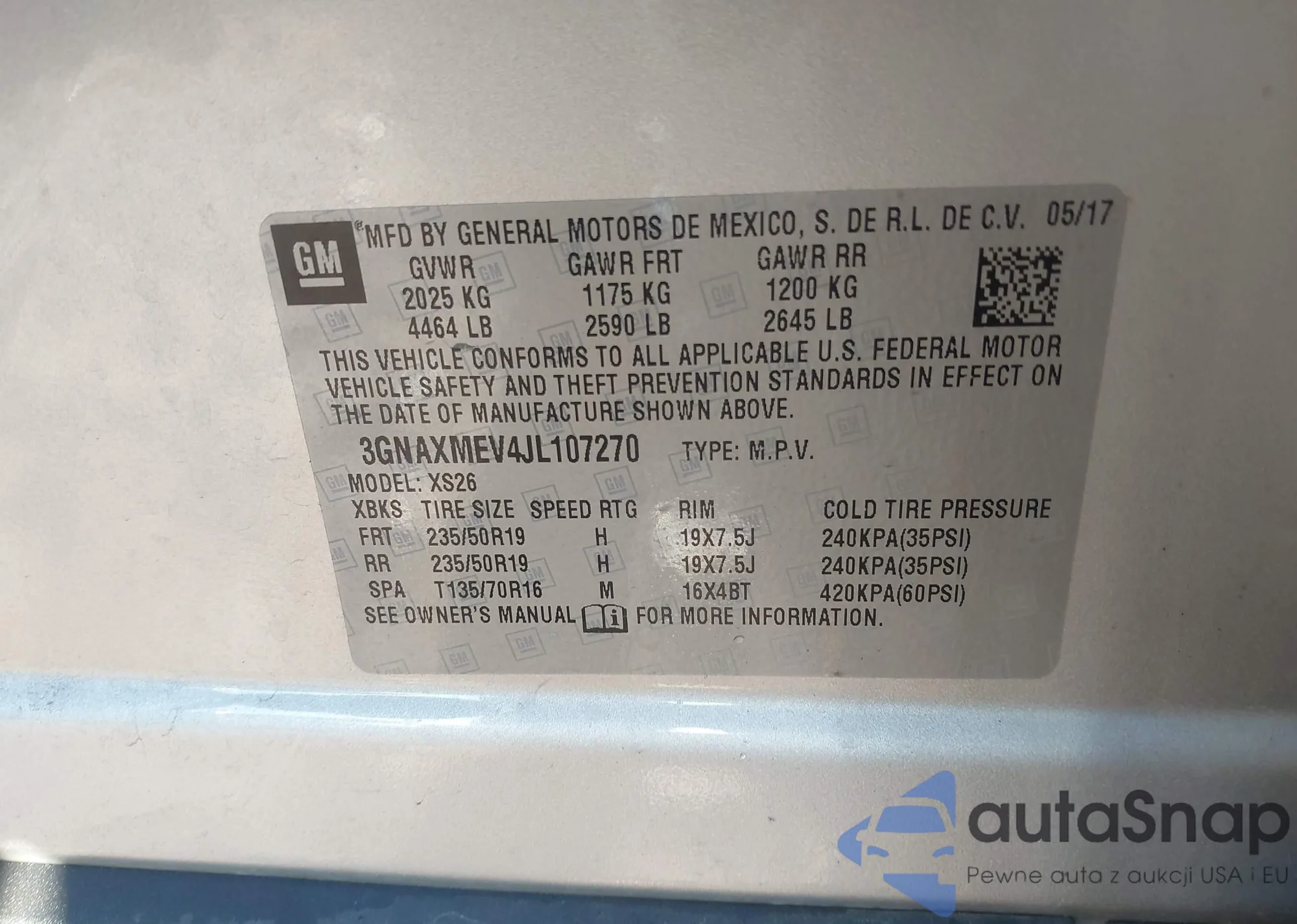 VIN: 3GNAXMEV4JL107270
