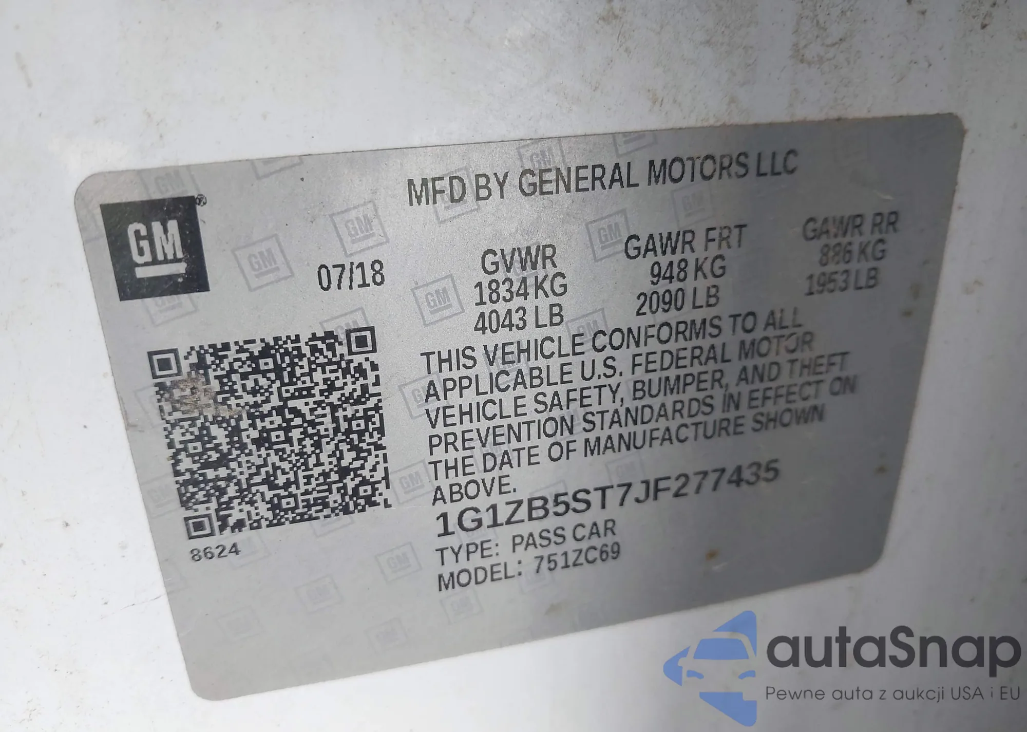 VIN: 1G1ZB5ST7JF277435
