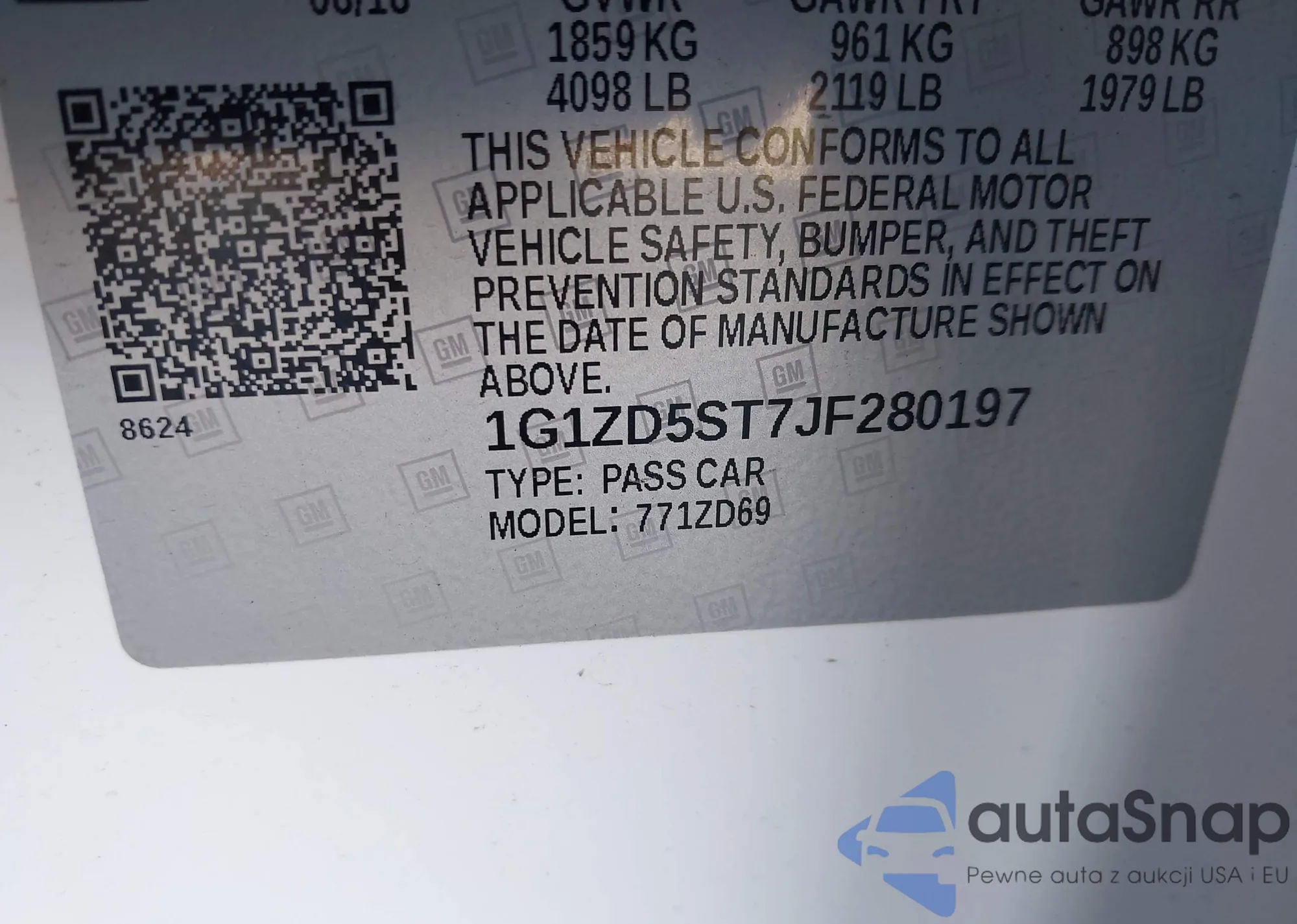 VIN: 1G1ZD5ST7JF280197