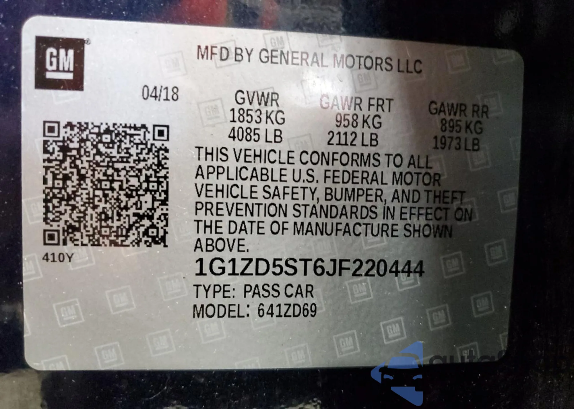 VIN: 1G1ZD5ST6JF220444