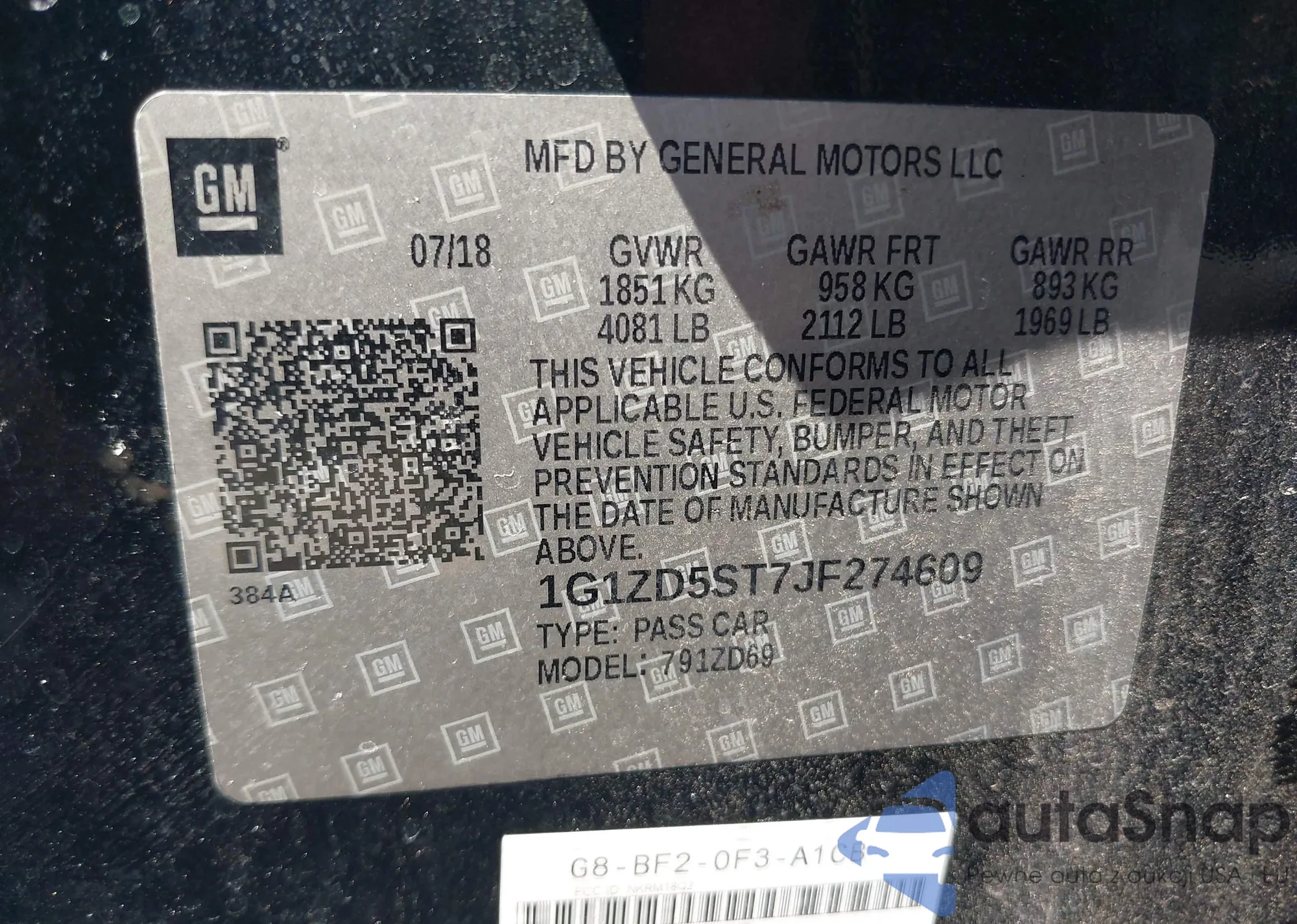 The car Chevrolet Malibu 2018 (VIN 1G1ZD5ST7JF274609) has not been auctioned before. The documents are clean, and the mileage matches or is below the market average. Sold by an insurance company – we recommend purchase. Delivery to the port will take approx. 6–8 weeks.