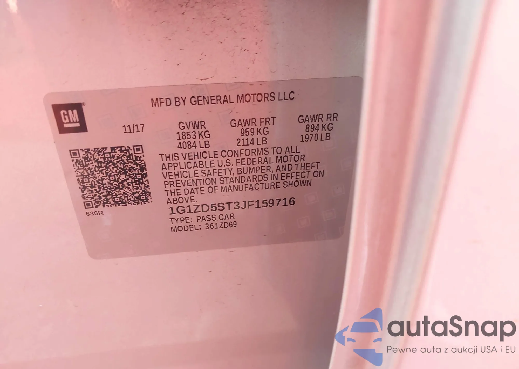VIN: 1G1ZD5ST3JF159716
