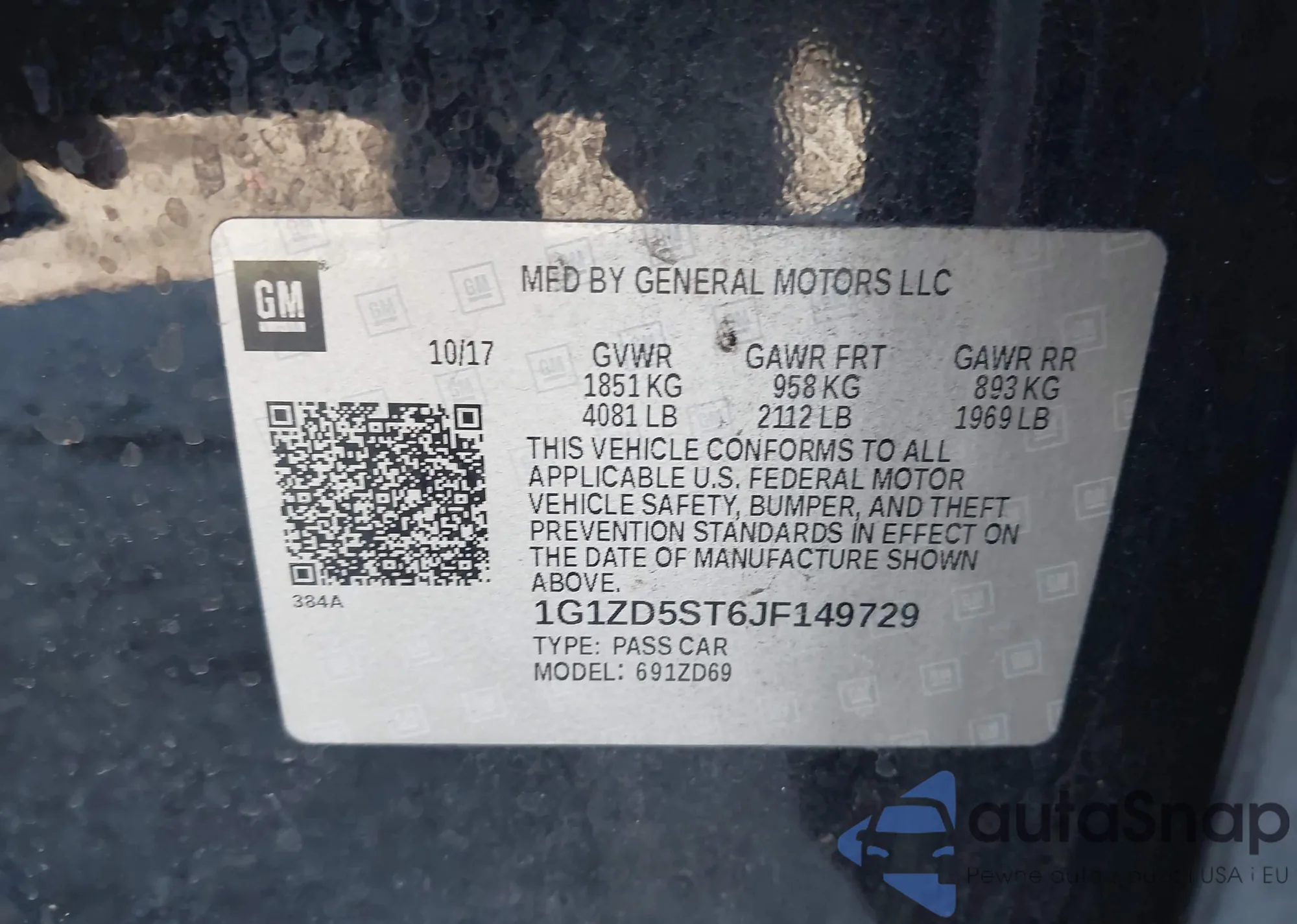 VIN: 1G1ZD5ST6JF149729