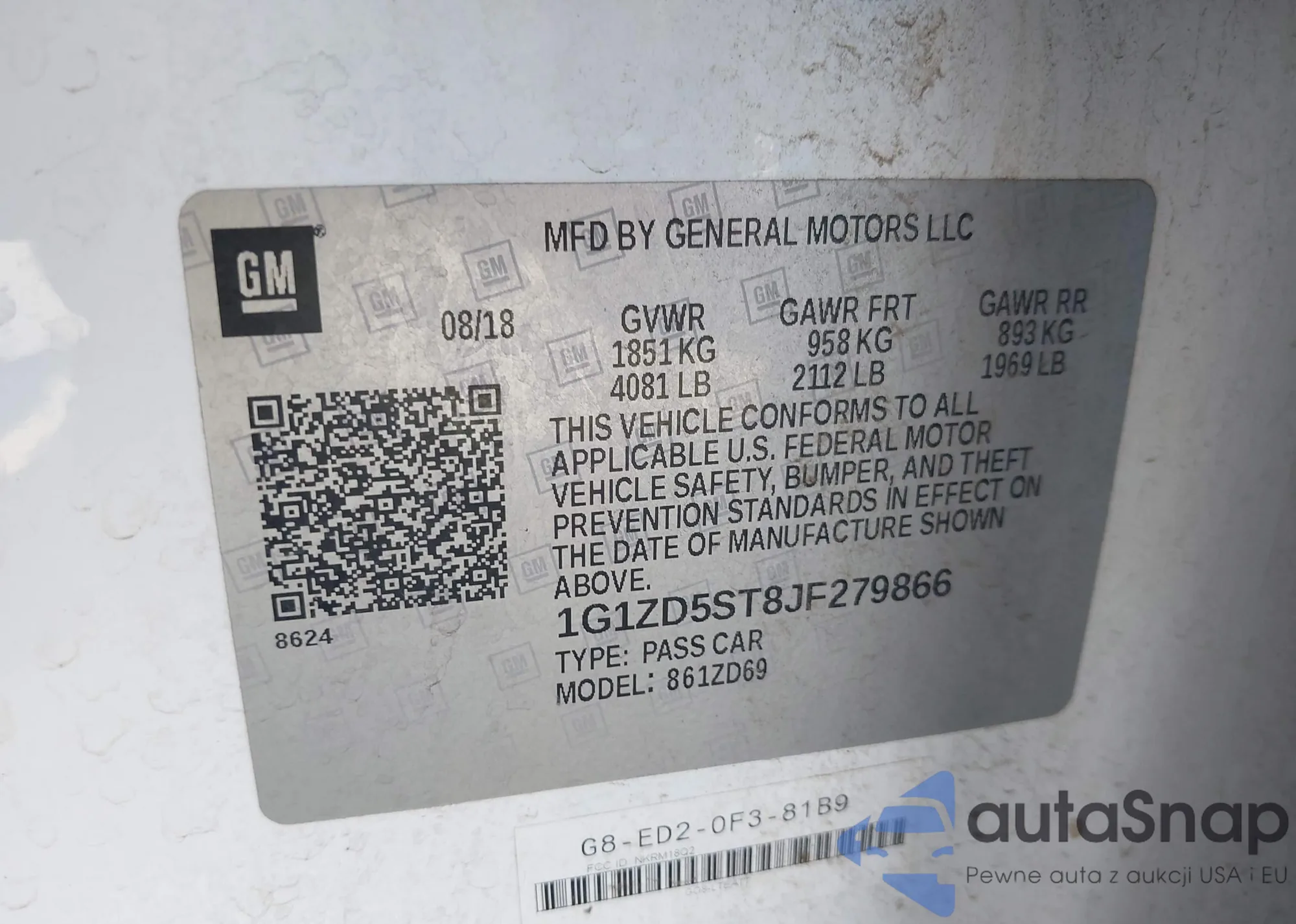 The car Chevrolet Malibu 2018 (VIN 1G1ZD5ST8JF279866) has not been auctioned before. The documents are clean, and the mileage matches or is below the market average. Sold by an insurance company – we recommend purchase. Delivery to the port will take approx. 6–8 weeks.
