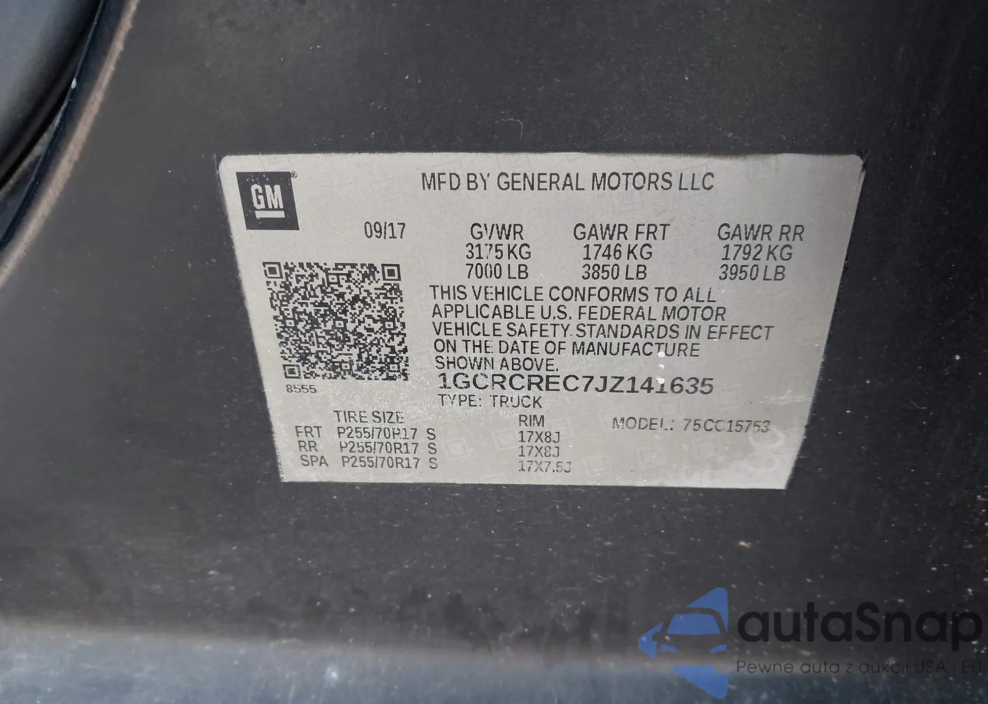 VIN: 1GCRCREC7JZ141635