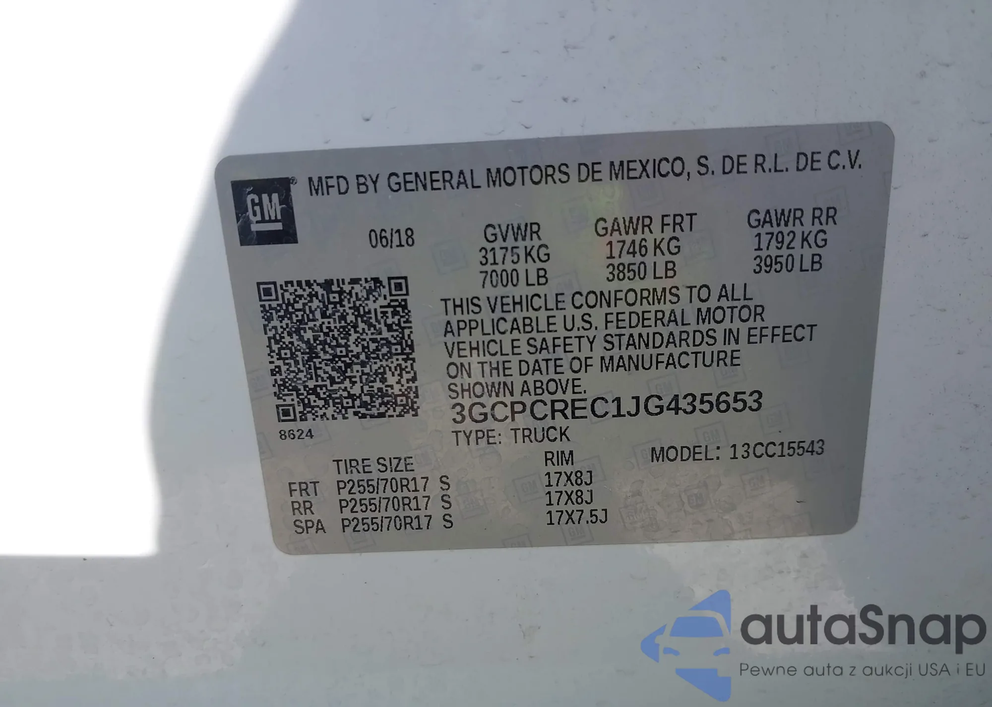 The car Chevrolet Silverado 2018 (VIN 3GCPCREC1JG435653) has not been auctioned before. The documents are clean, and the mileage matches or is below the market average. Sold by an insurance company – we recommend purchase. Delivery to the port will take approx. 6–8 weeks.