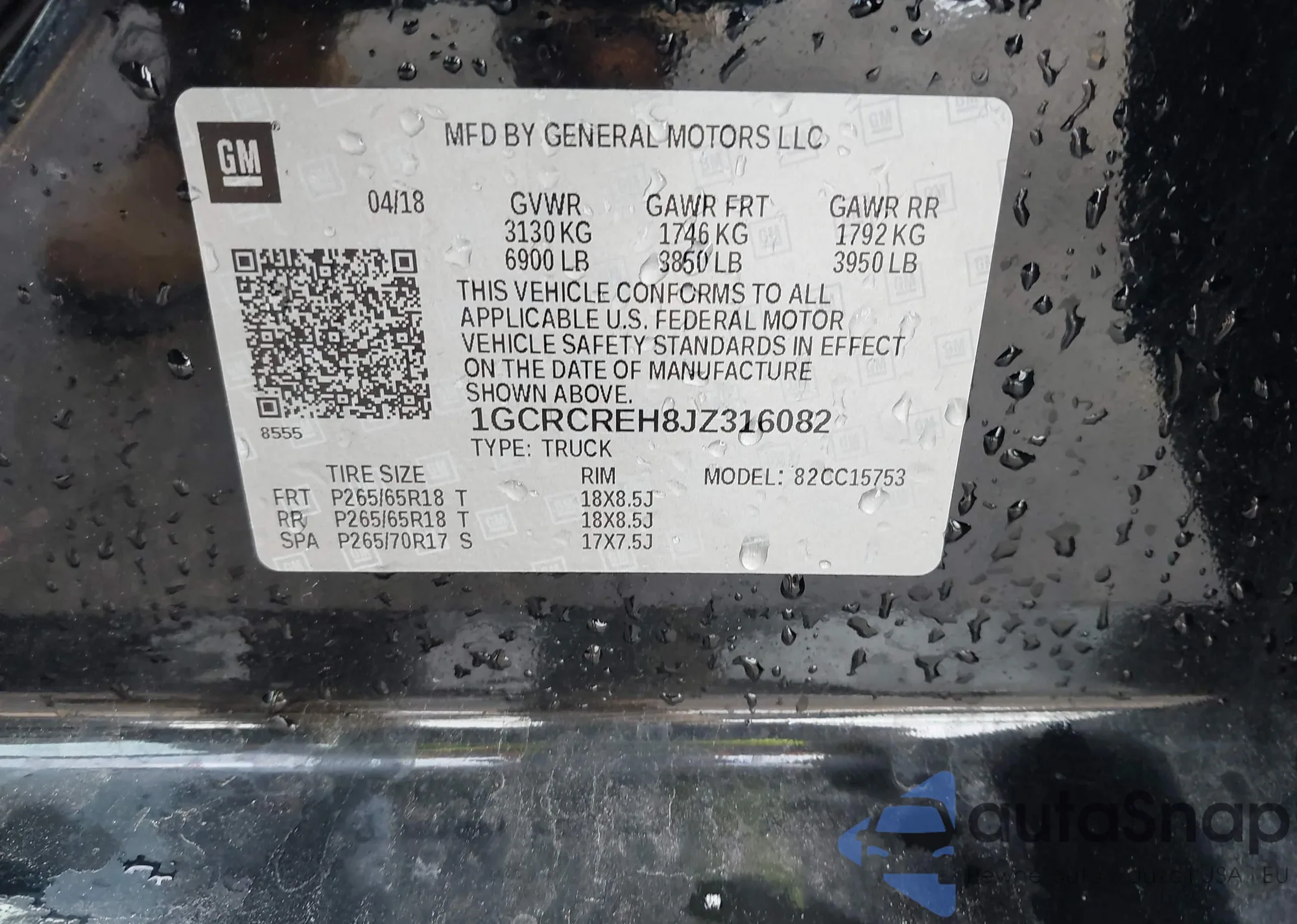 VIN: 1GCRCREH8JZ316082