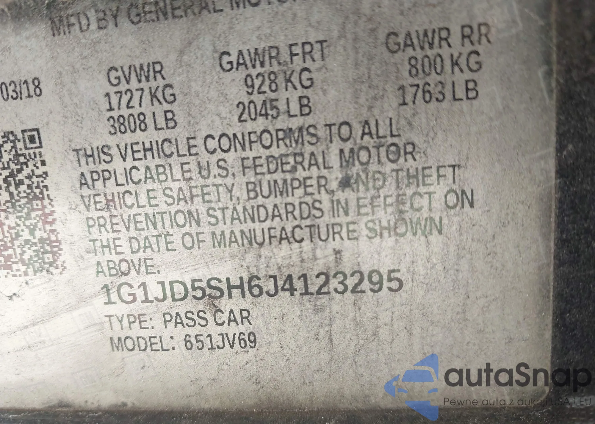 • VIN: 1G1JD5SH6J4123295