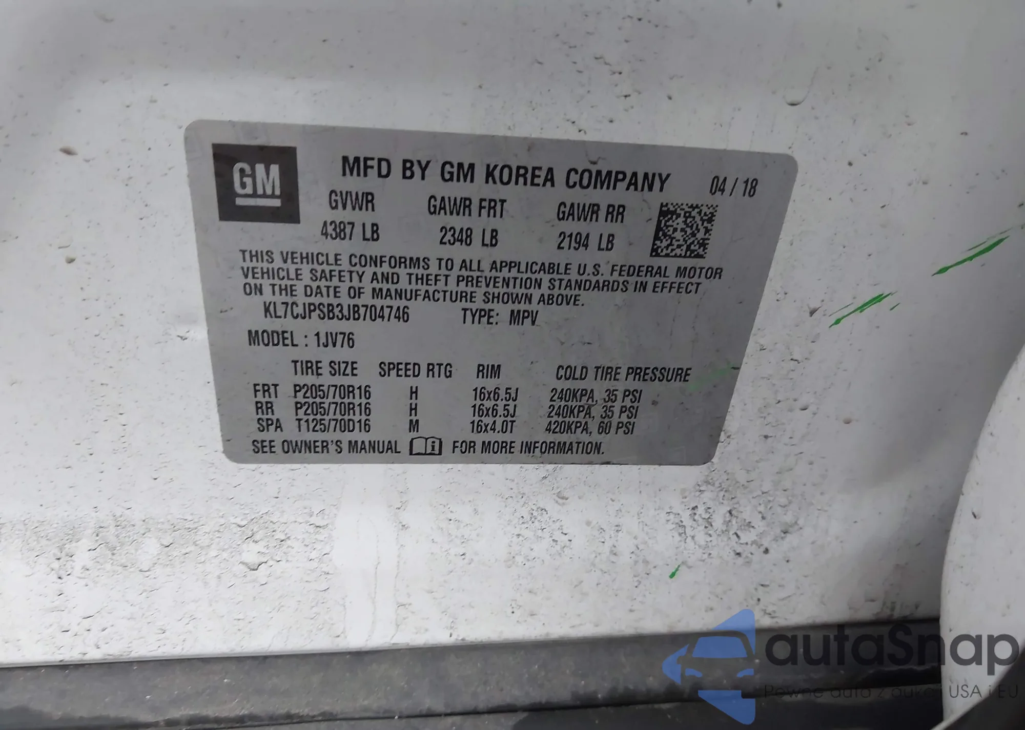 VIN: KL7CJPSB3JB704746