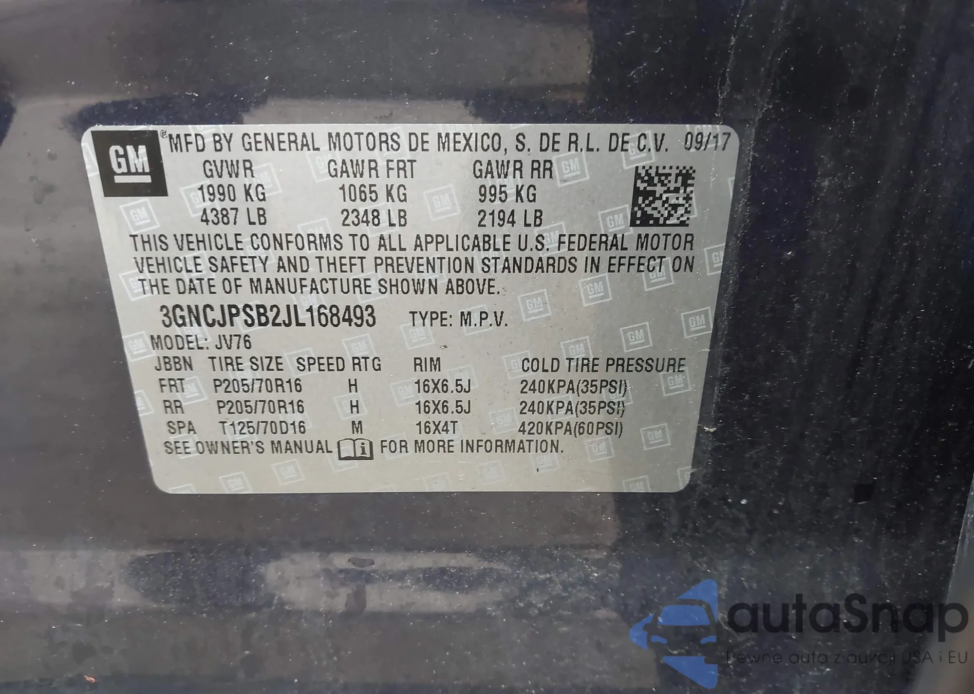 VIN: 3GNCJPSB2JL168493