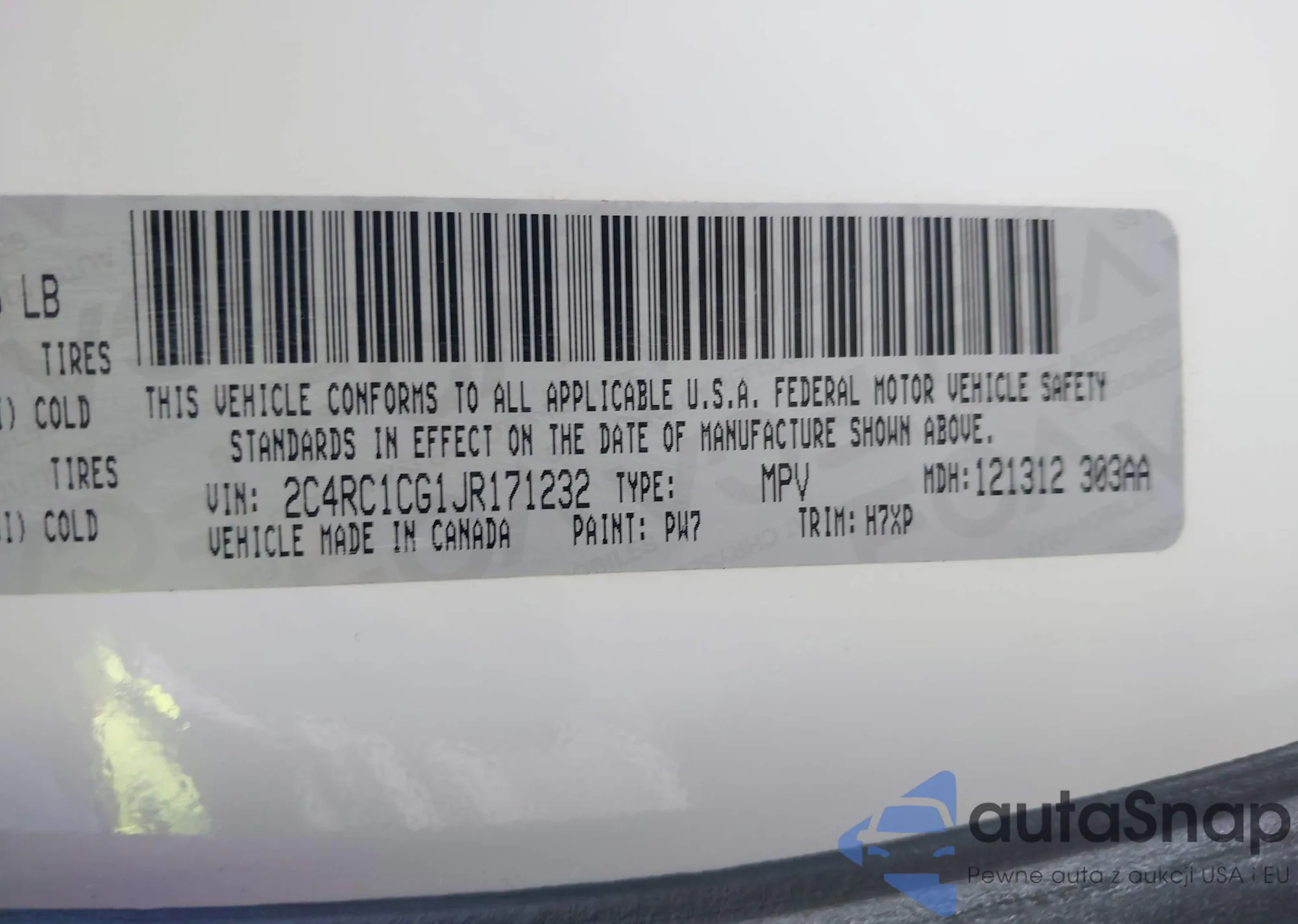 The car Chrysler Pacifica 2018 (VIN 2C4RC1CG1JR171232) has not been auctioned before. The documents are clean, and the mileage matches or is below the market average. Sold by an insurance company – we recommend purchase. Delivery to the port will take approx. 6–8 weeks.