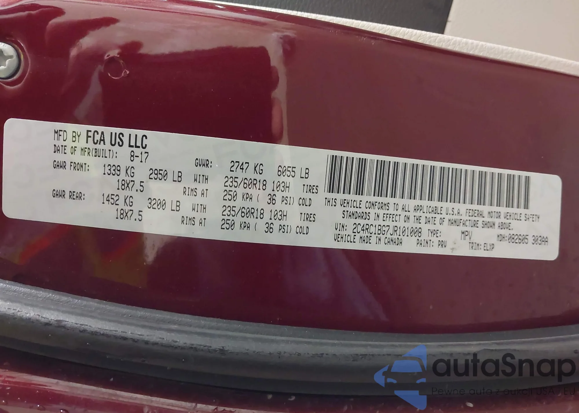 VIN: 2C4RC1BG7JR101008