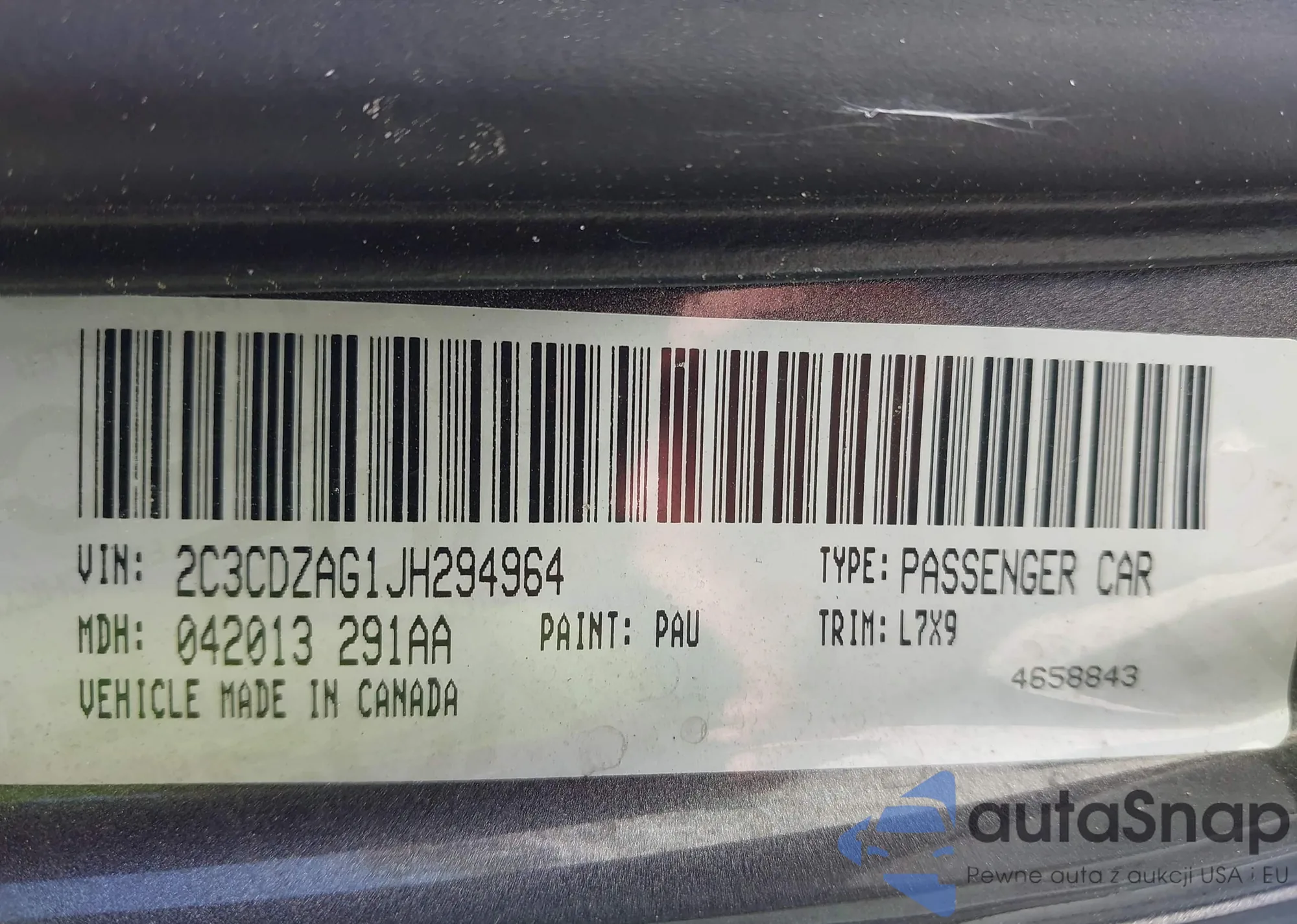 • VIN: 2C3CDZAG1JH294964