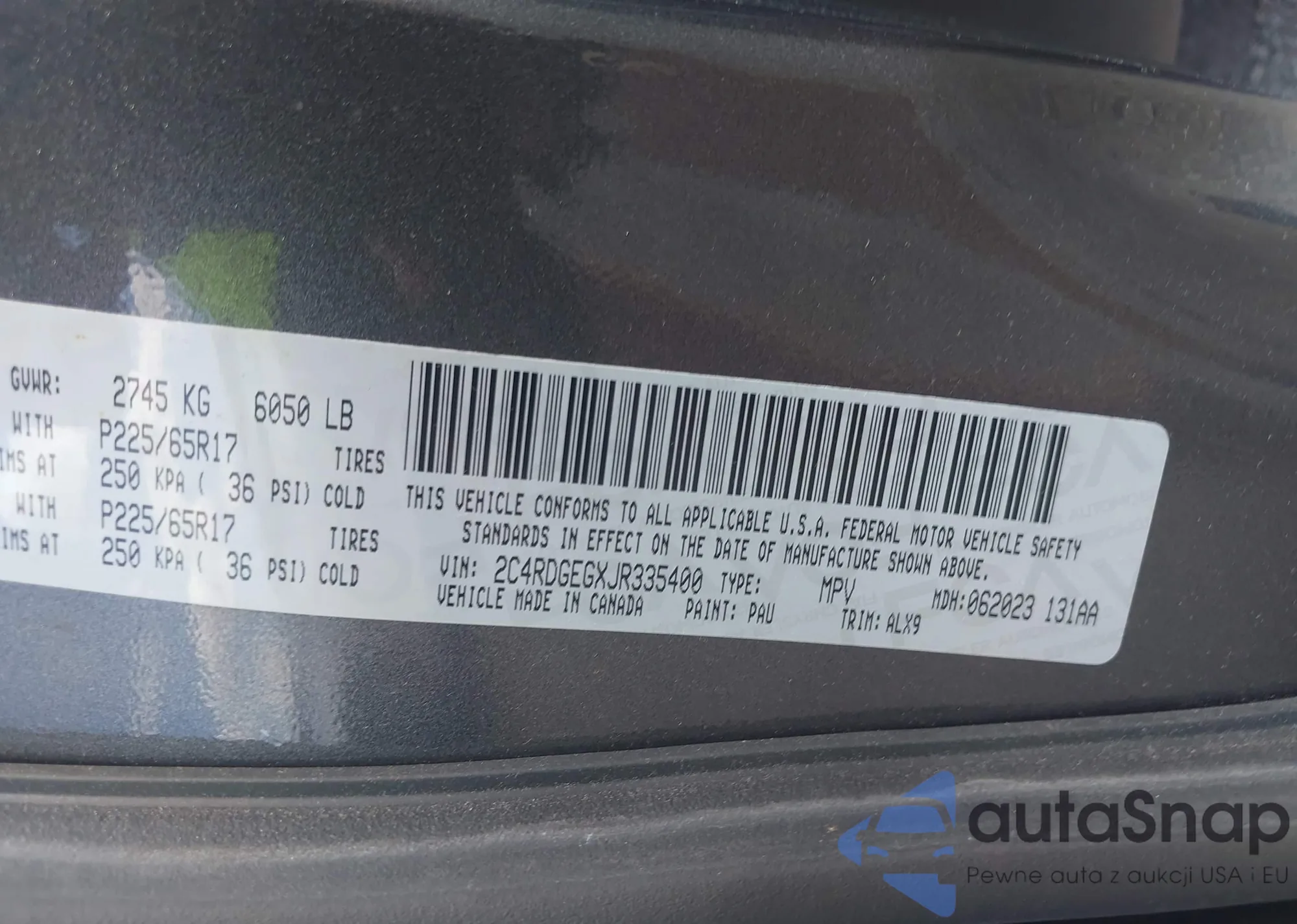 VIN: 2C4RDGEGXJR335400