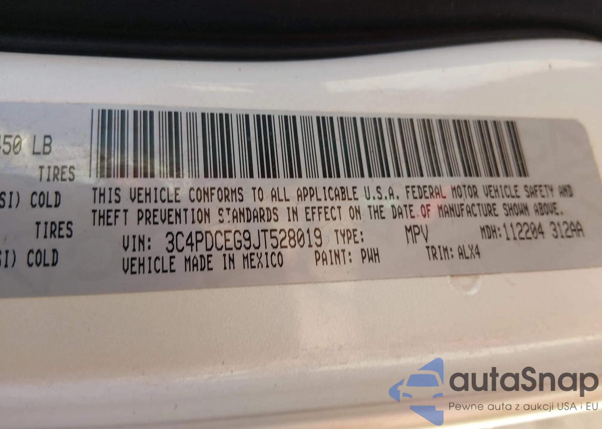 The car Dodge Journey 2018 (VIN 3C4PDCEG9JT528019) has not been auctioned before. The documents are clean, and the mileage matches or is below the market average. Sold by an insurance company – we recommend purchase. Delivery to the port will take approx. 6–8 weeks.