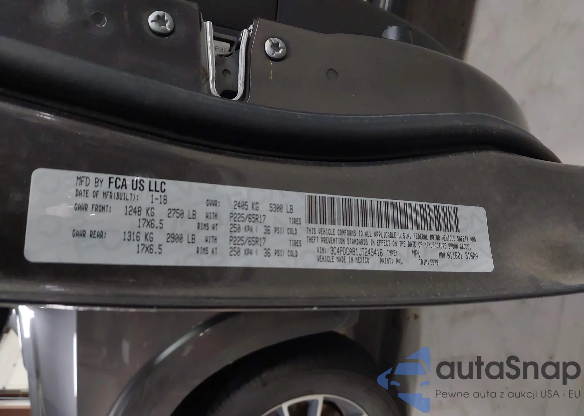 The car Dodge Journey 2018 (VIN 3C4PDCAB1JT249416) has not been auctioned before. The documents are clean, and the mileage matches or is below the market average. Sold by an insurance company – we recommend purchase. Delivery to the port will take approx. 6–8 weeks.