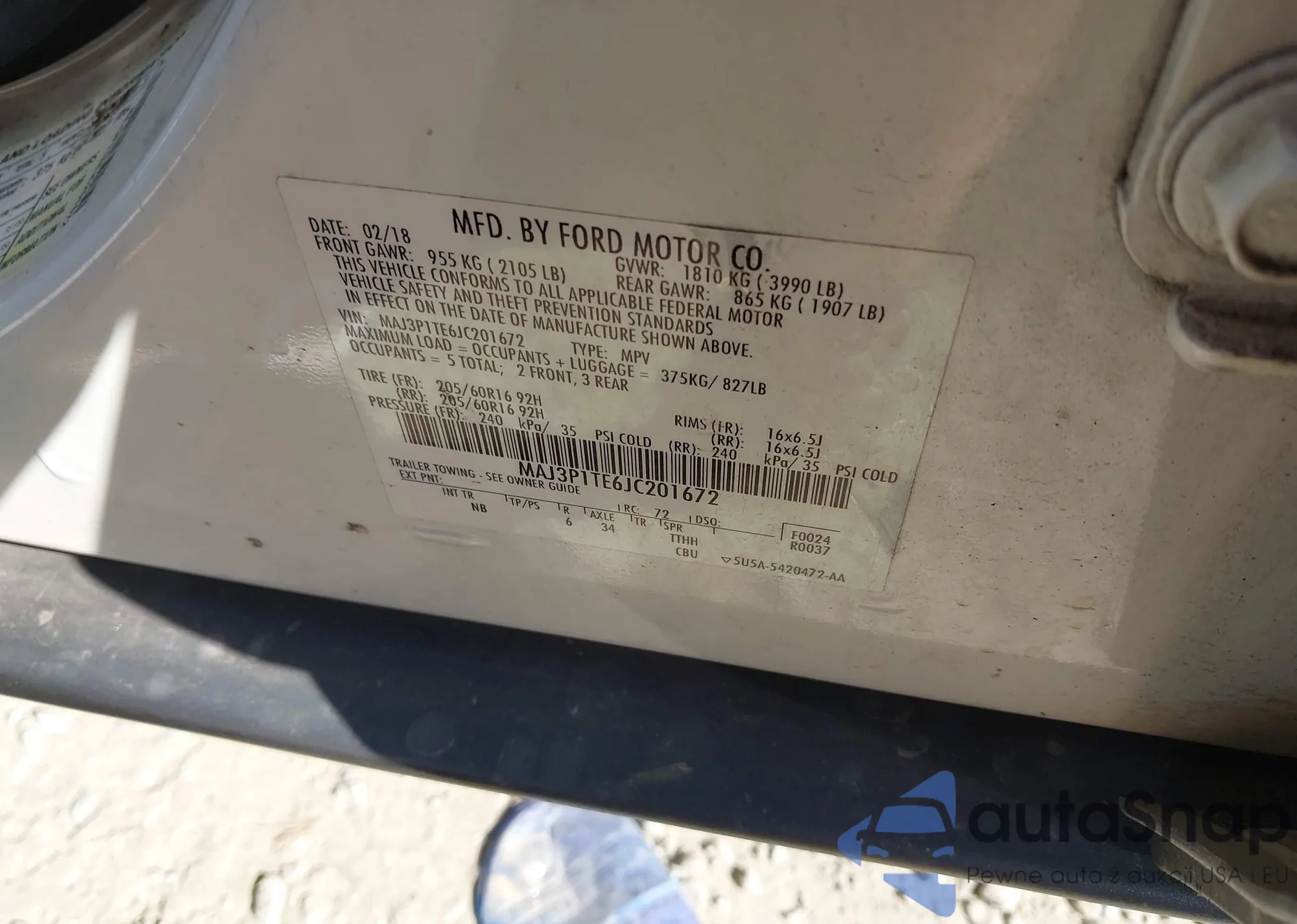 • VIN: MAJ3P1TE6JC201672