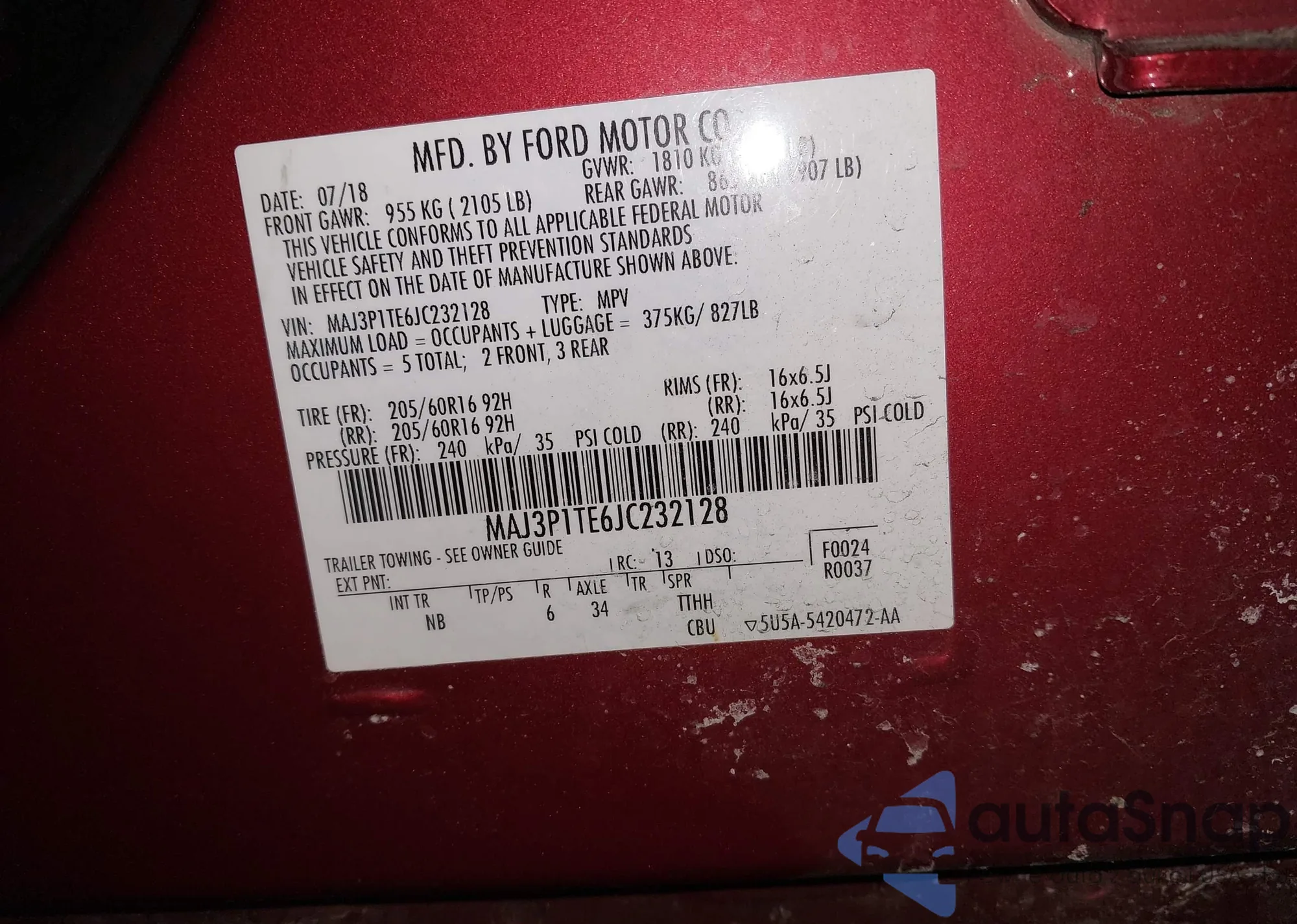 • VIN: MAJ3P1TE6JC232128