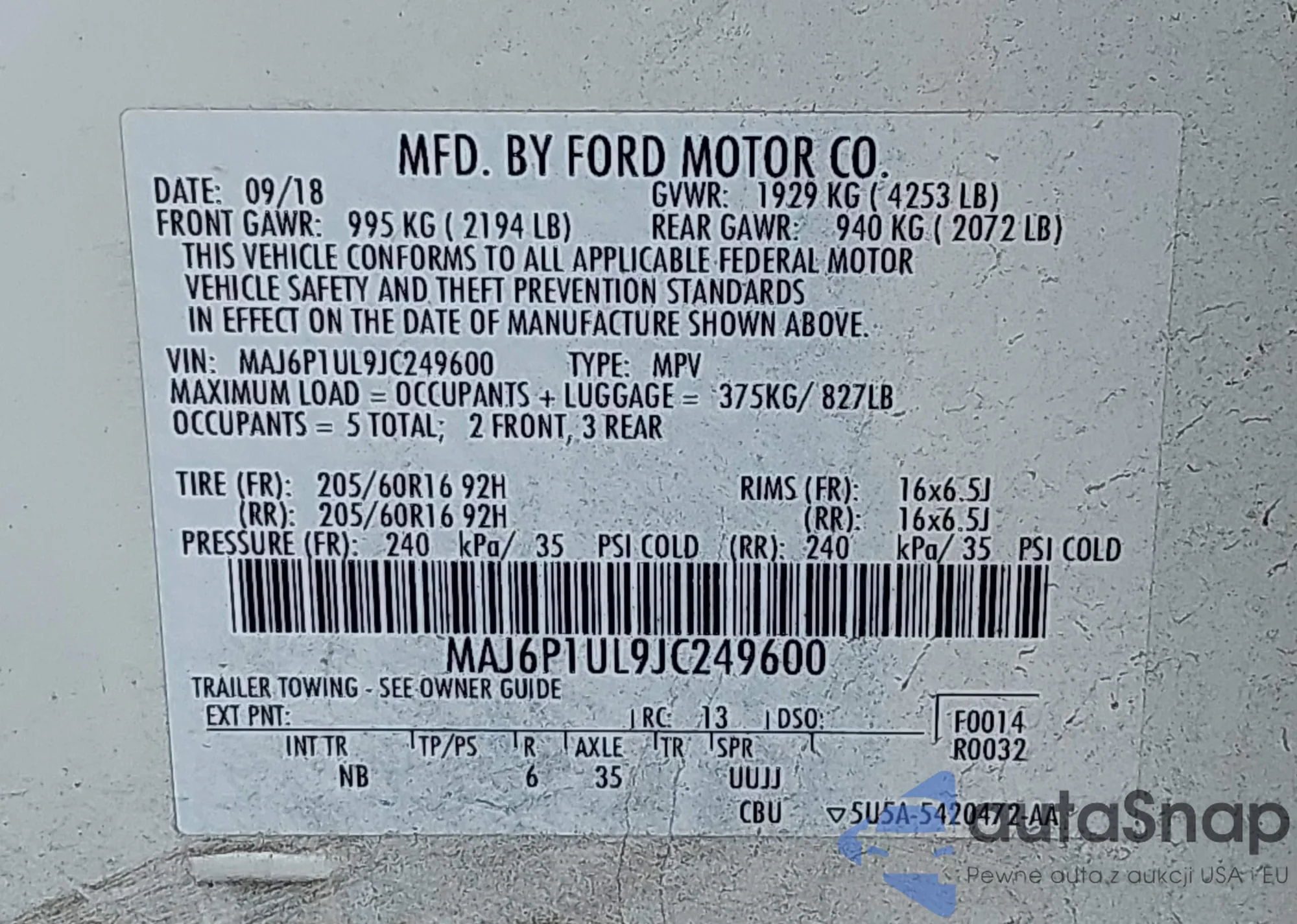 VIN: MAJ6P1UL9JC249600