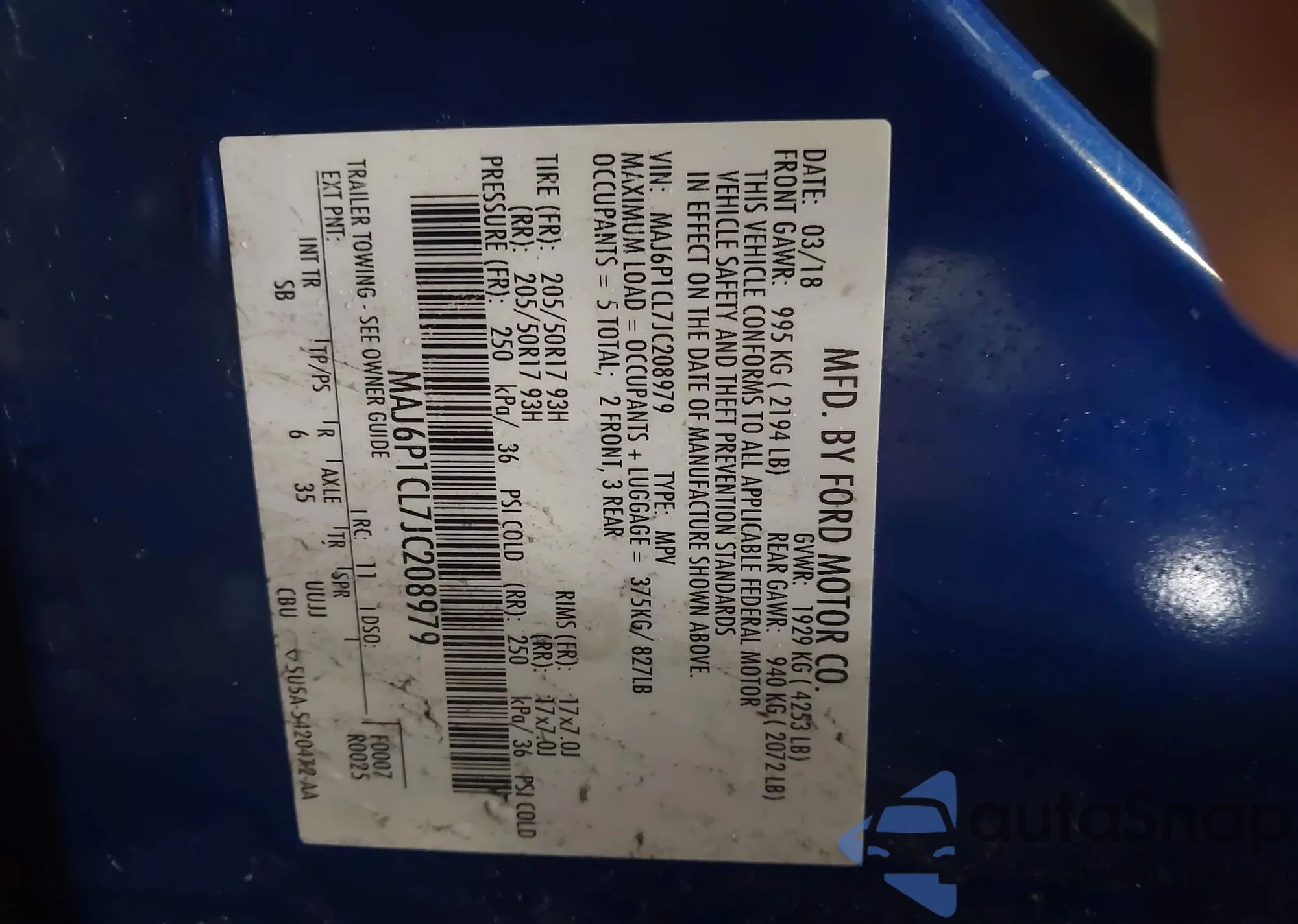 VIN: MAJ6P1CL7JC208979