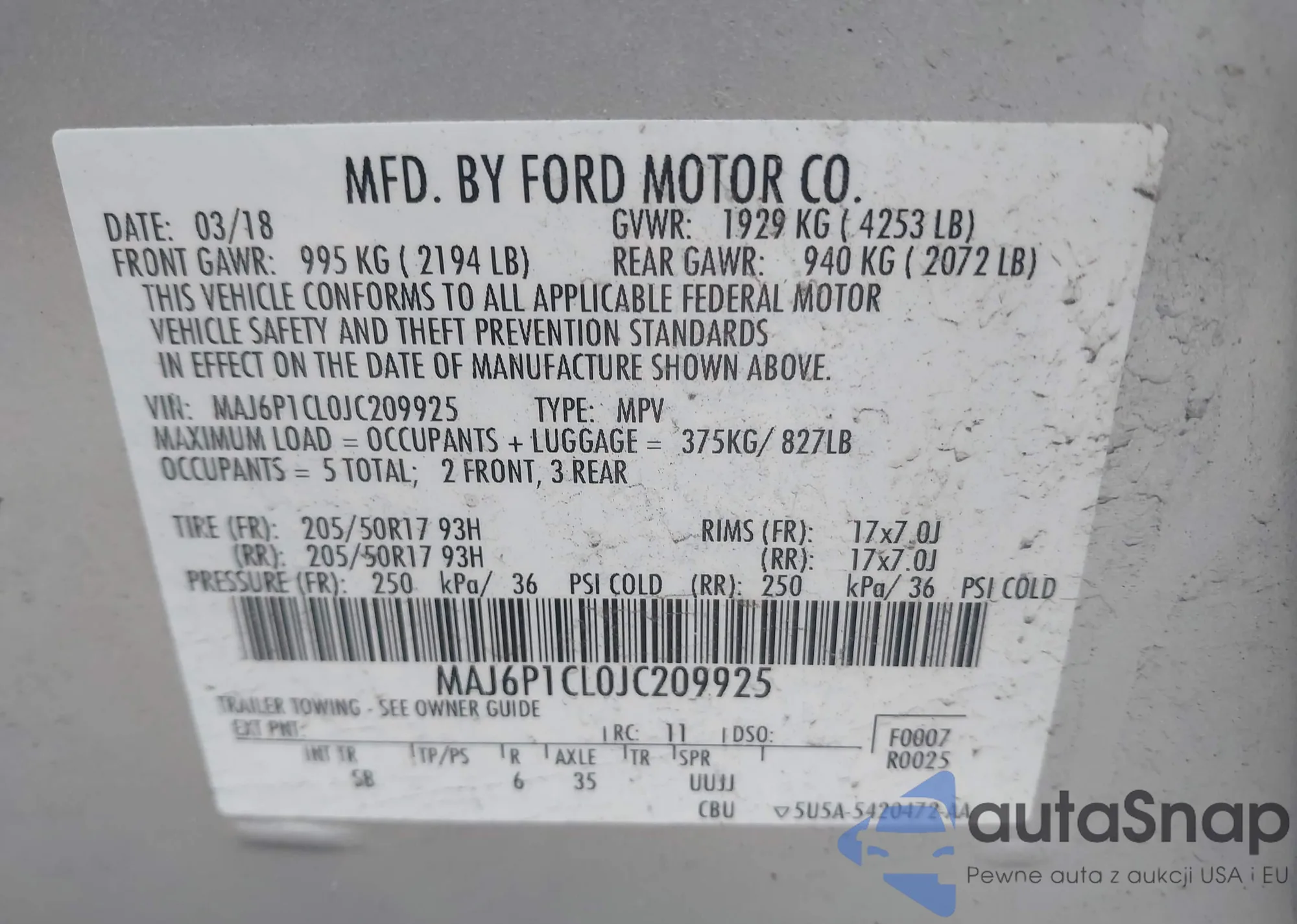 VIN: MAJ6P1CL0JC209925