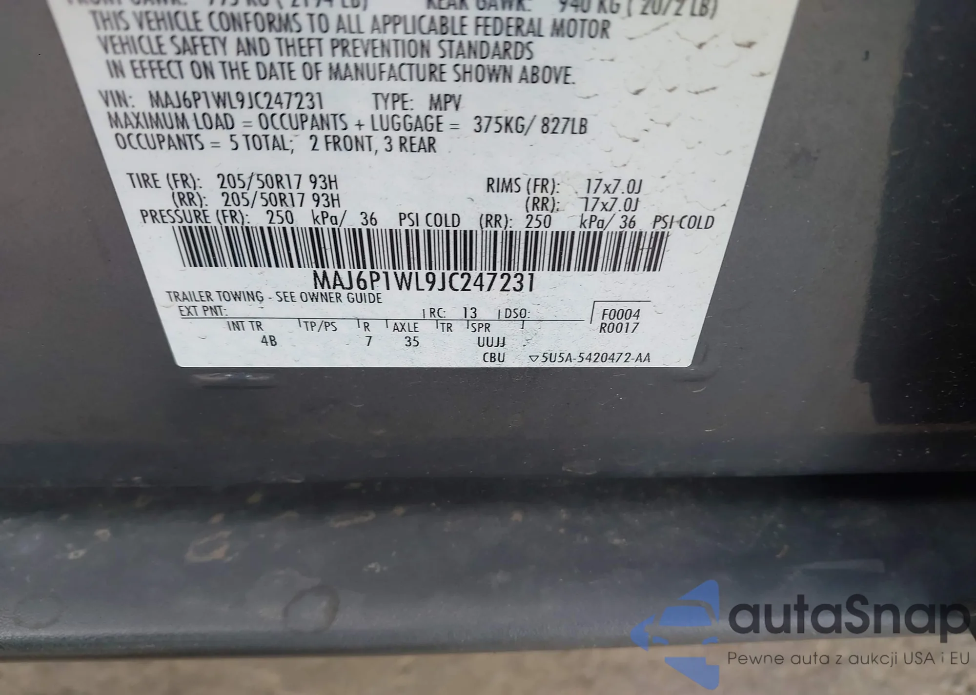 VIN: MAJ6P1WL9JC247231