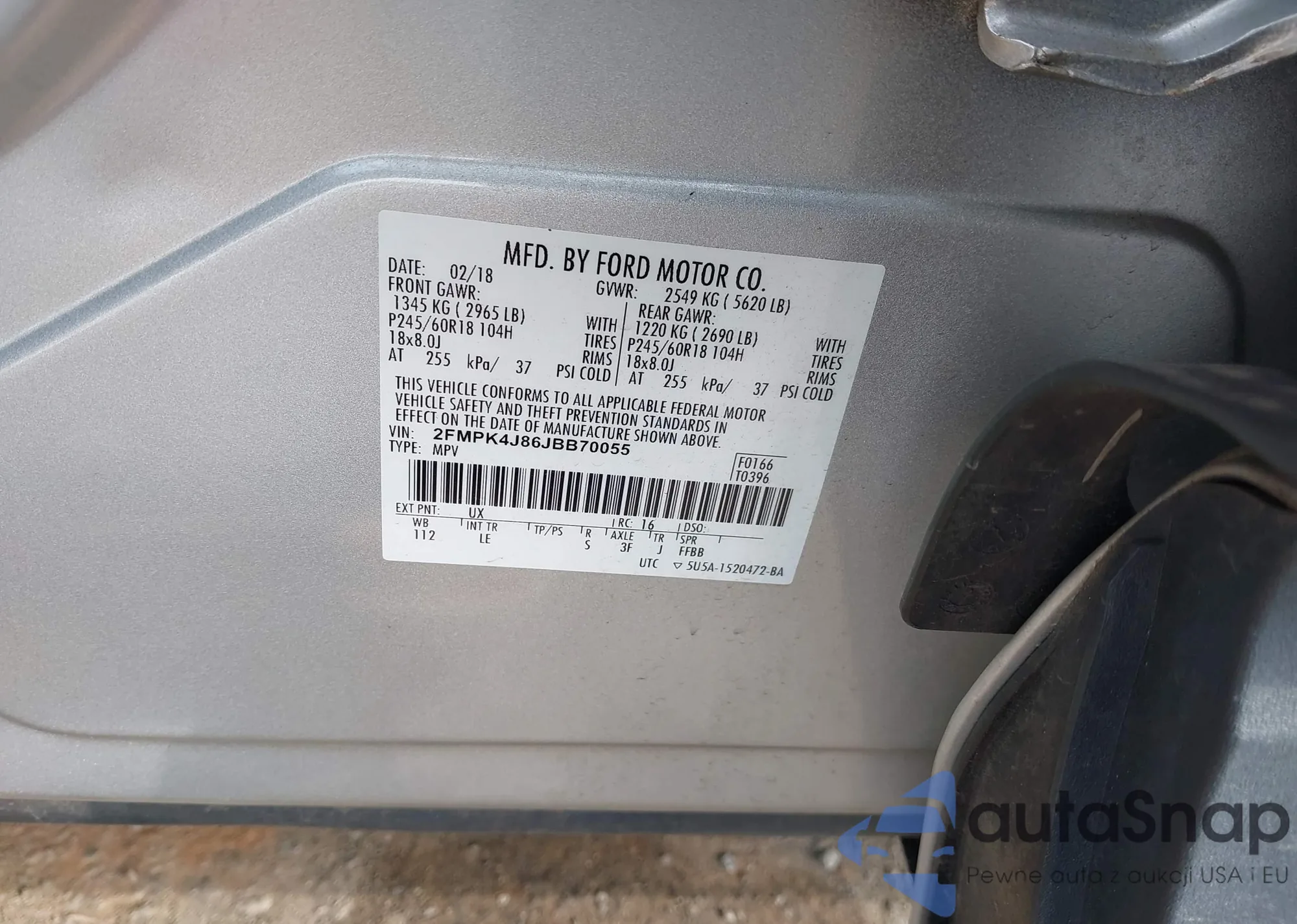 The car Ford Edge 2018 (VIN 2FMPK4J86JBB70055) has not been auctioned before. The documents are clean, and the mileage matches or is below the market average. Sold by an insurance company – we recommend purchase. Delivery to the port will take approx. 6–8 weeks.