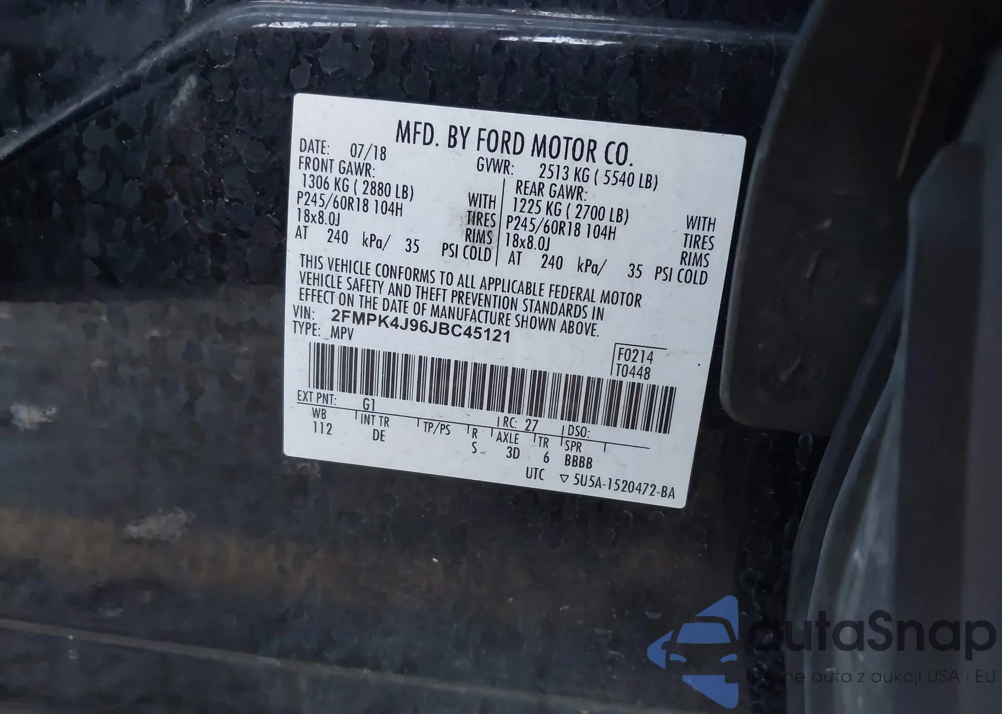 VIN: 2FMPK4J96JBC45121