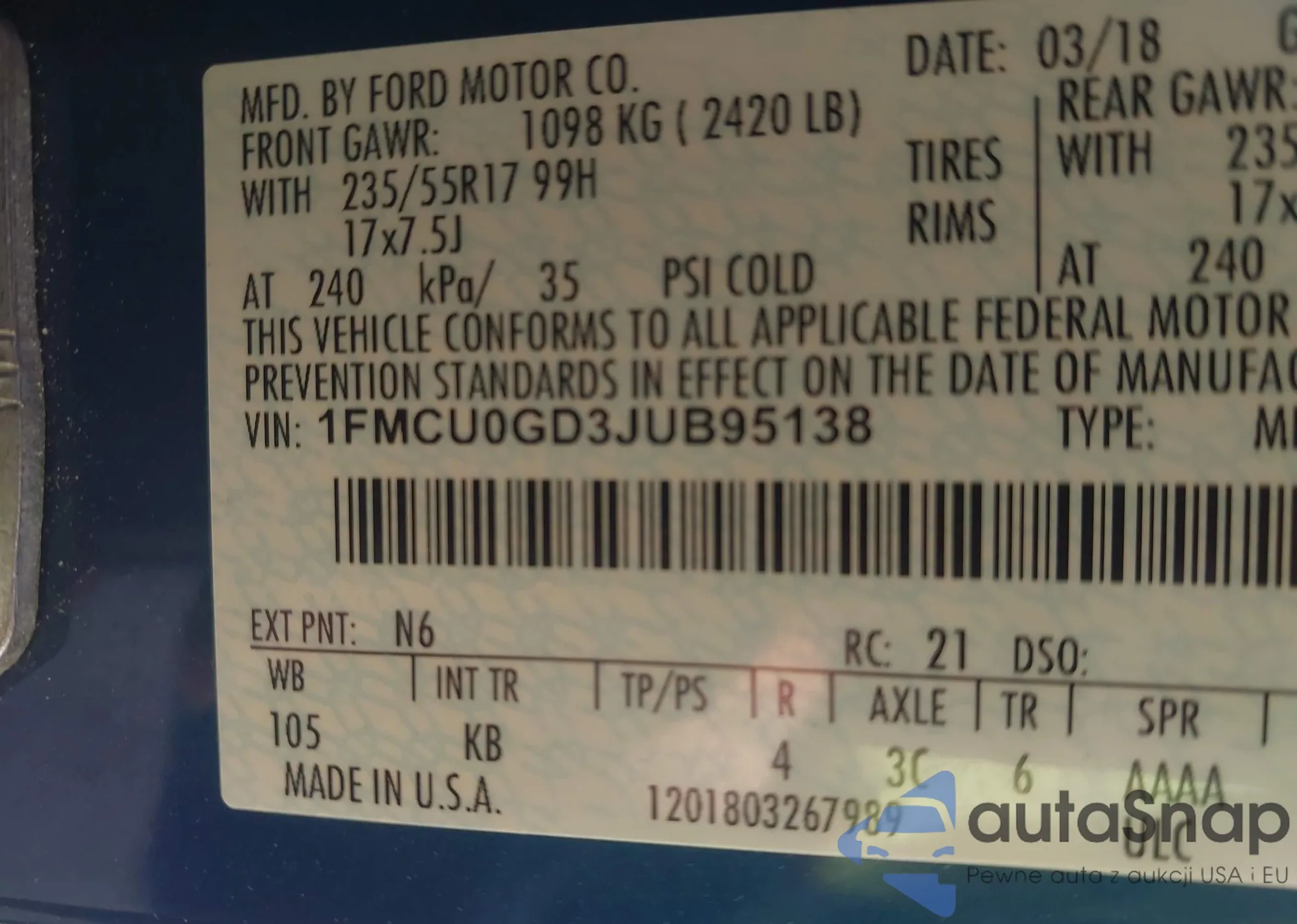 VIN: 1FMCU0GD3JUB95138