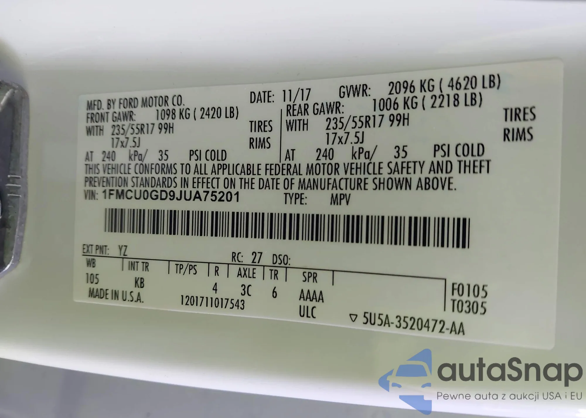 VIN: 1FMCU0GD9JUA75201