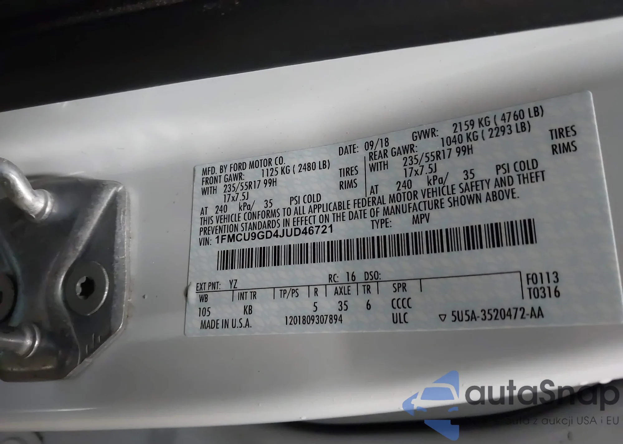 VIN: 1FMCU9GD4JUD46721
