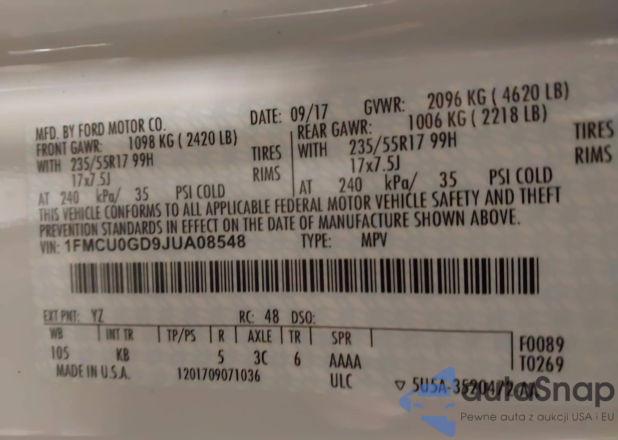 VIN: 1FMCU0GD9JUA08548