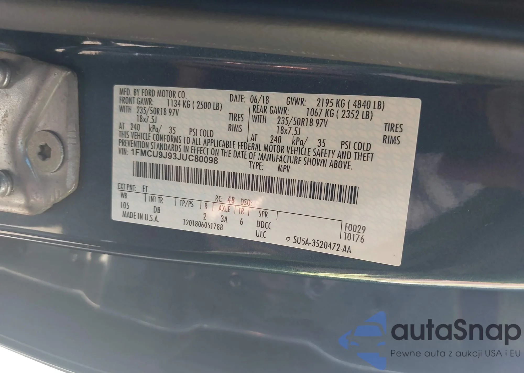 VIN: 1FMCU9J93JUC80098