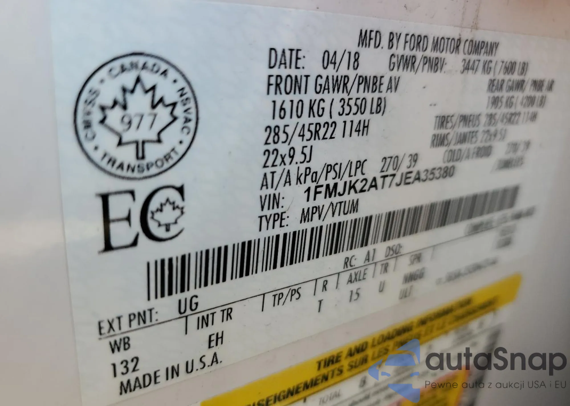 VIN: 1FMJK2AT7JEA35380