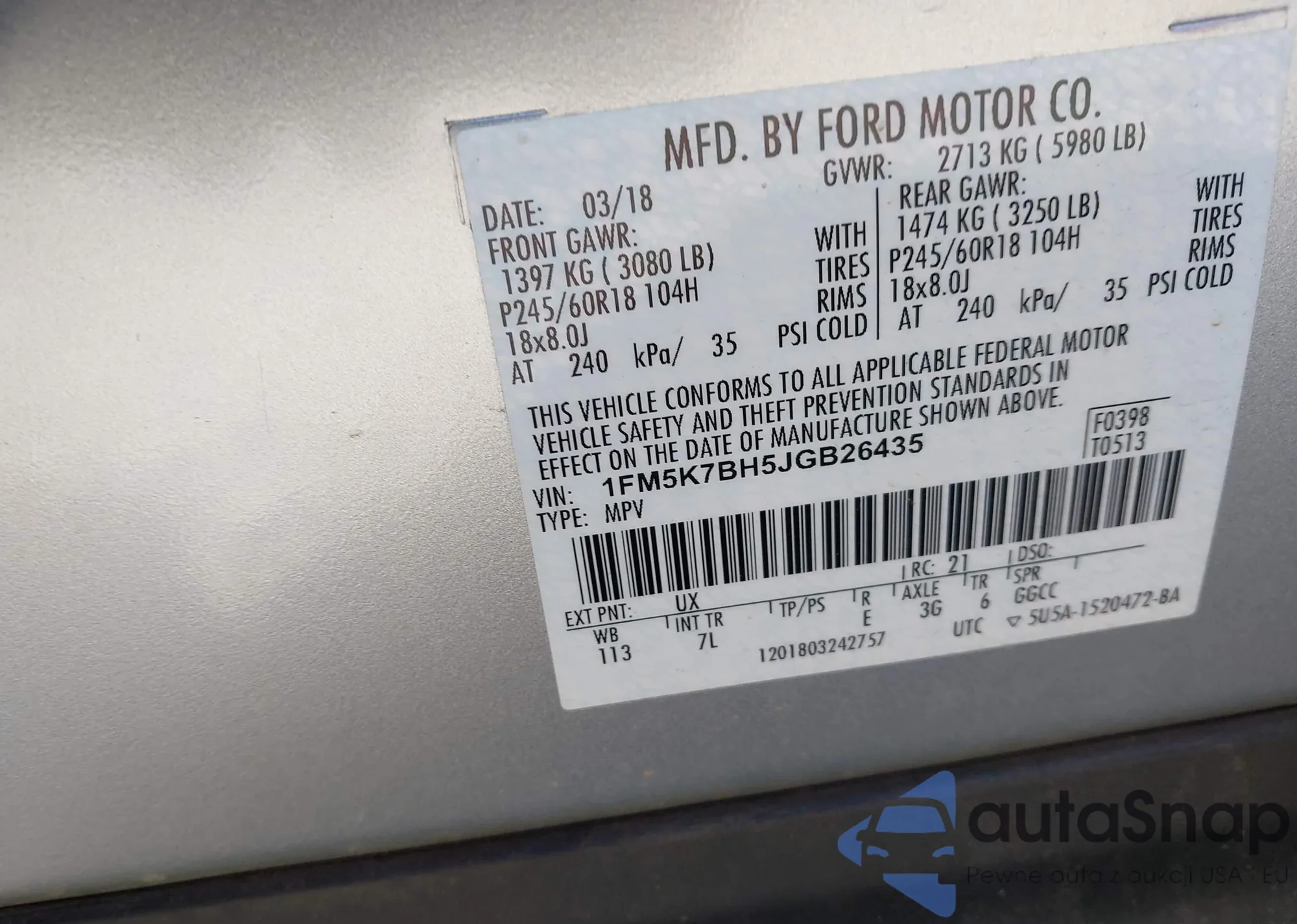 VIN: 1FM5K7BH5JGB26435