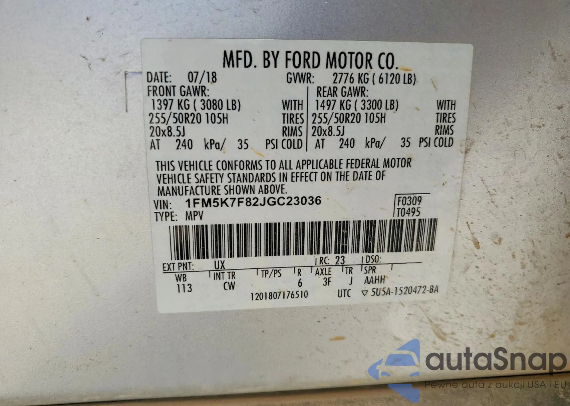 The car Ford Explorer 2018 (VIN 1FM5K7F82JGC23036) has not been auctioned before. The documents are clean, and the mileage matches or is below the market average. Sold by an insurance company – we recommend purchase. Delivery to the port will take approx. 6–8 weeks.