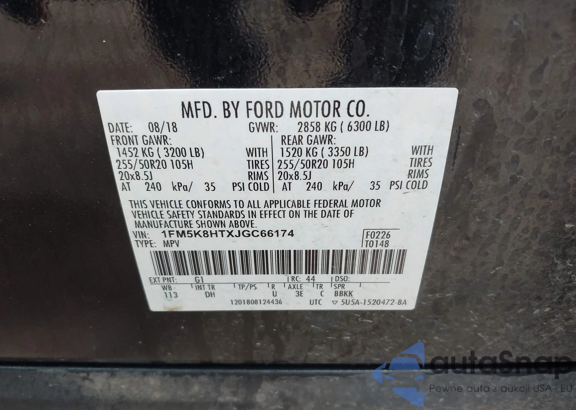 VIN: 1FM5K8HTXJGC66174