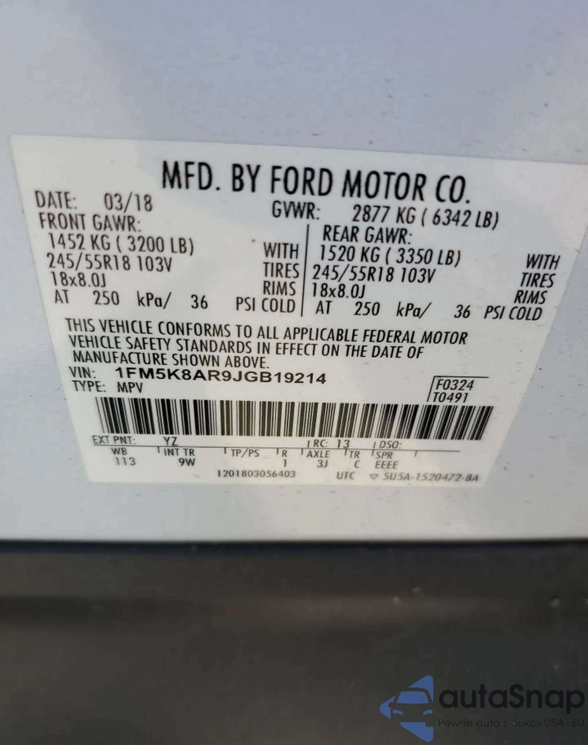 VIN: 1FM5K8AR9JGB19214