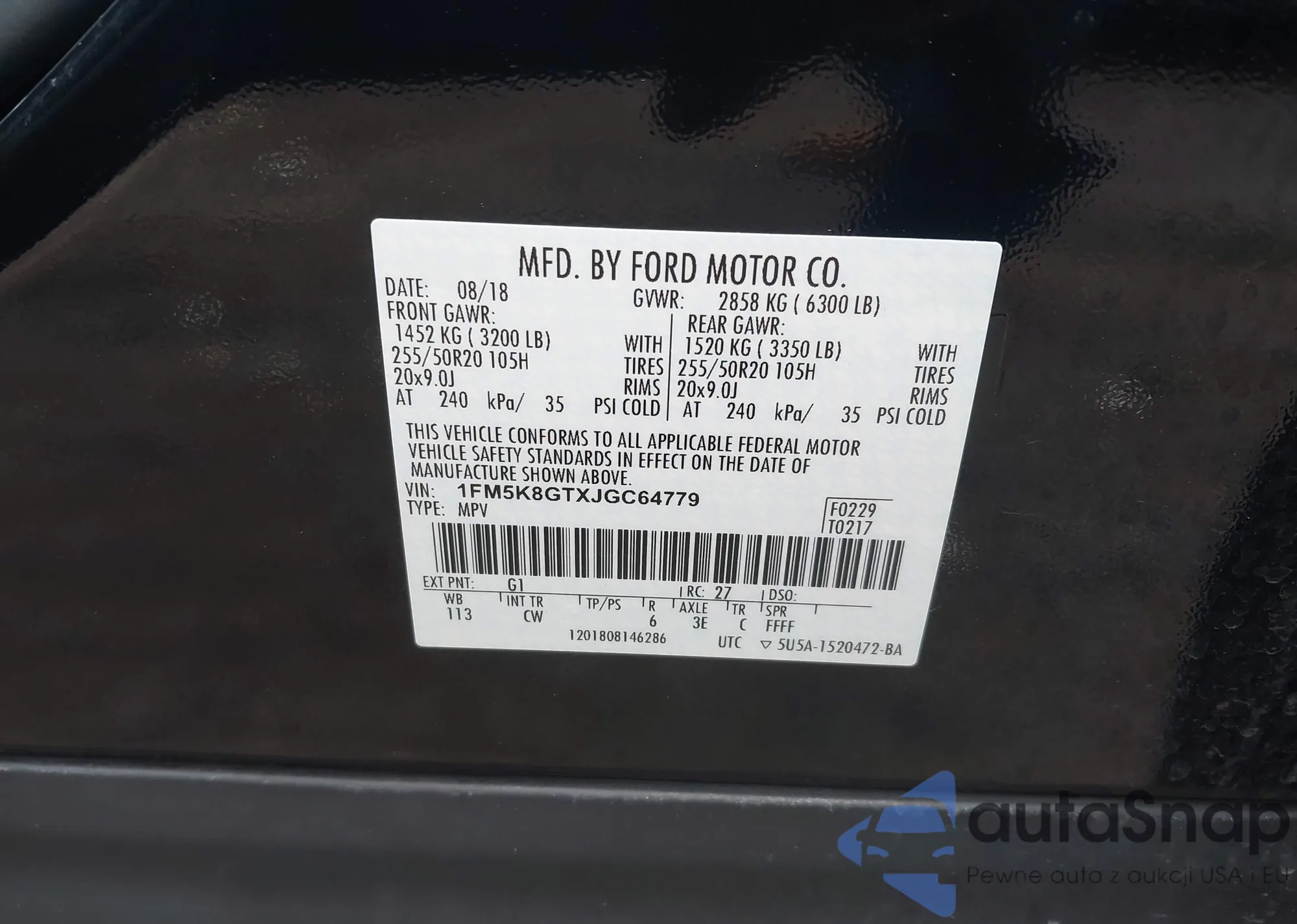 VIN: 1FM5K8GTXJGC64779