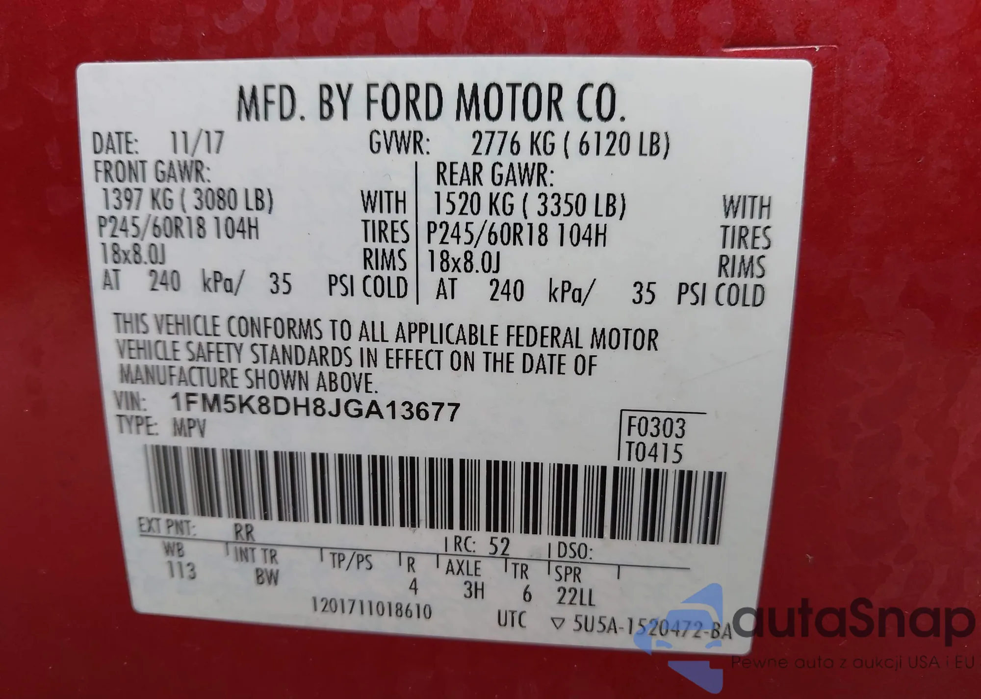 VIN: 1FM5K8DH8JGA13677