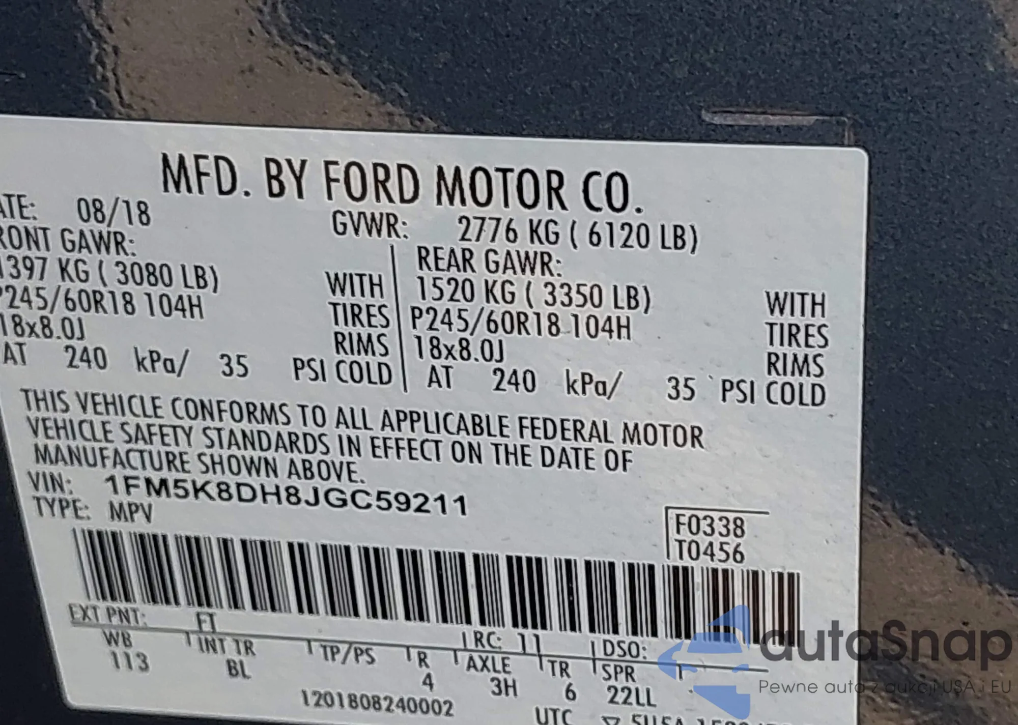 VIN: 1FM5K8DH8JGC59211