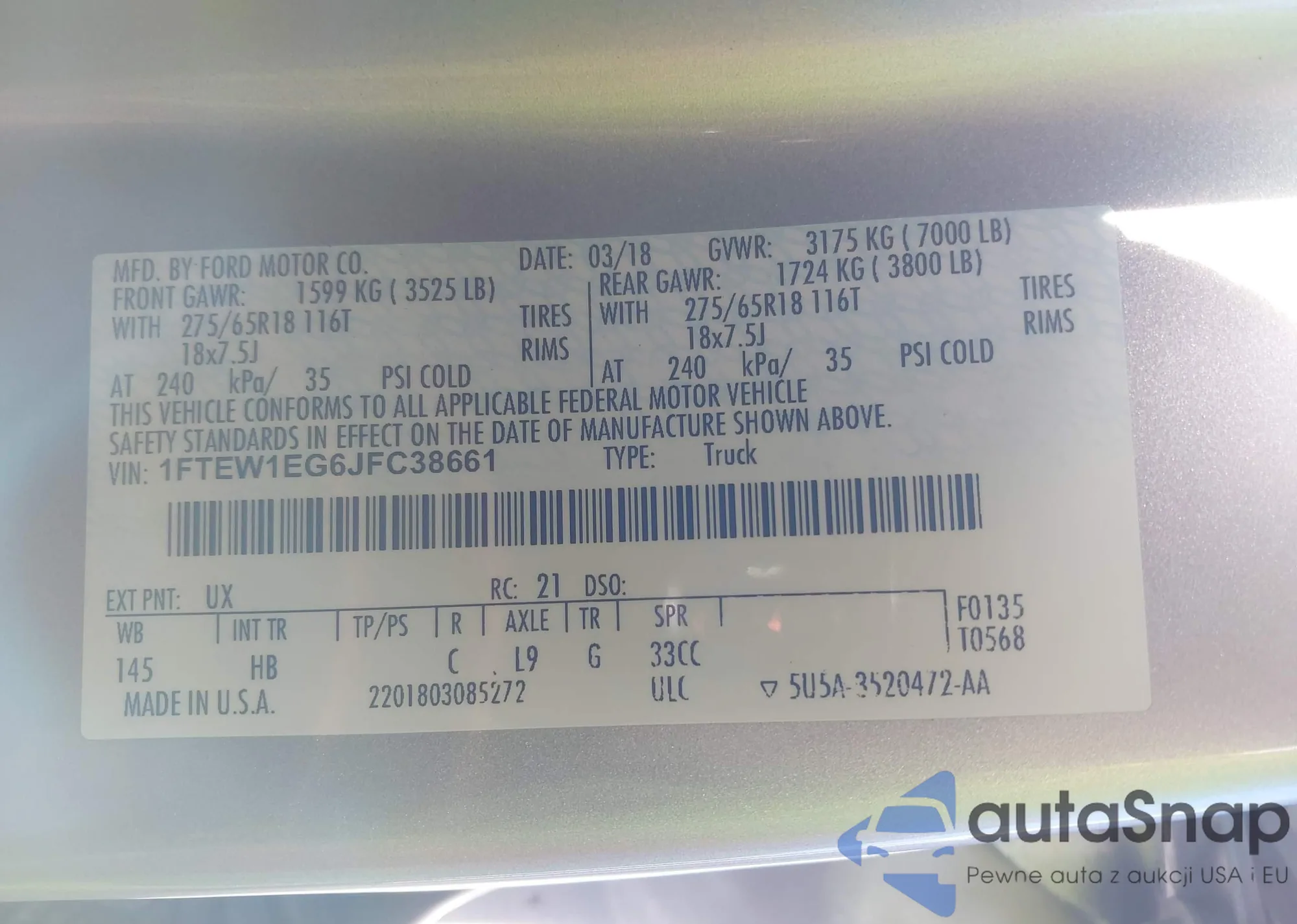 • VIN: 1FTEW1EG6JFC38661