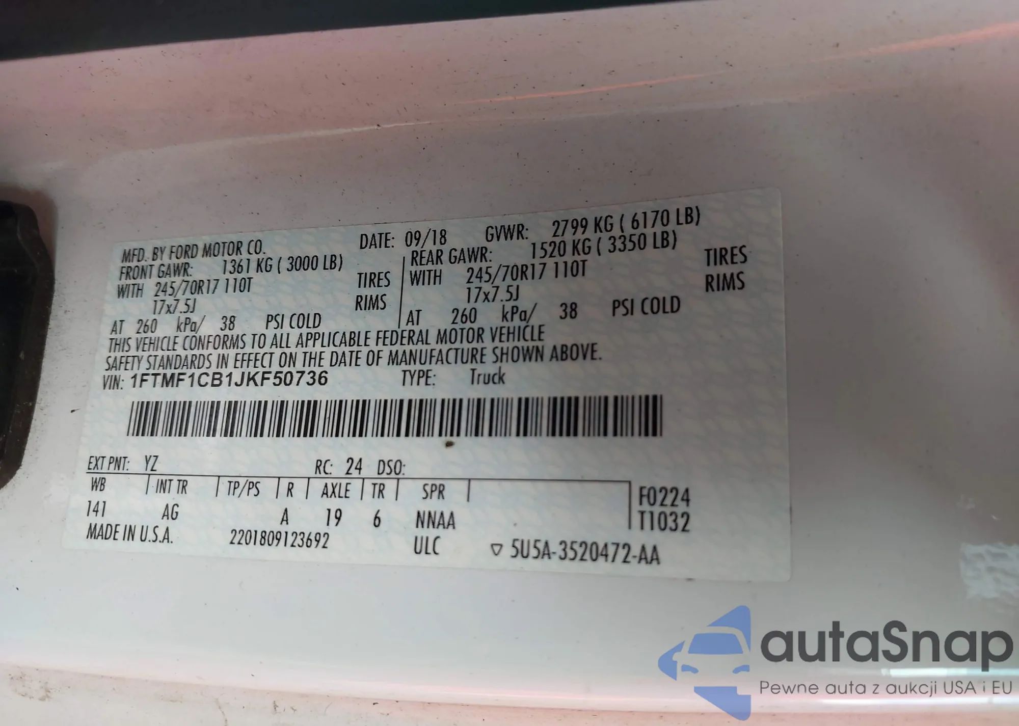 VIN: 1FTMF1CB1JKF50736