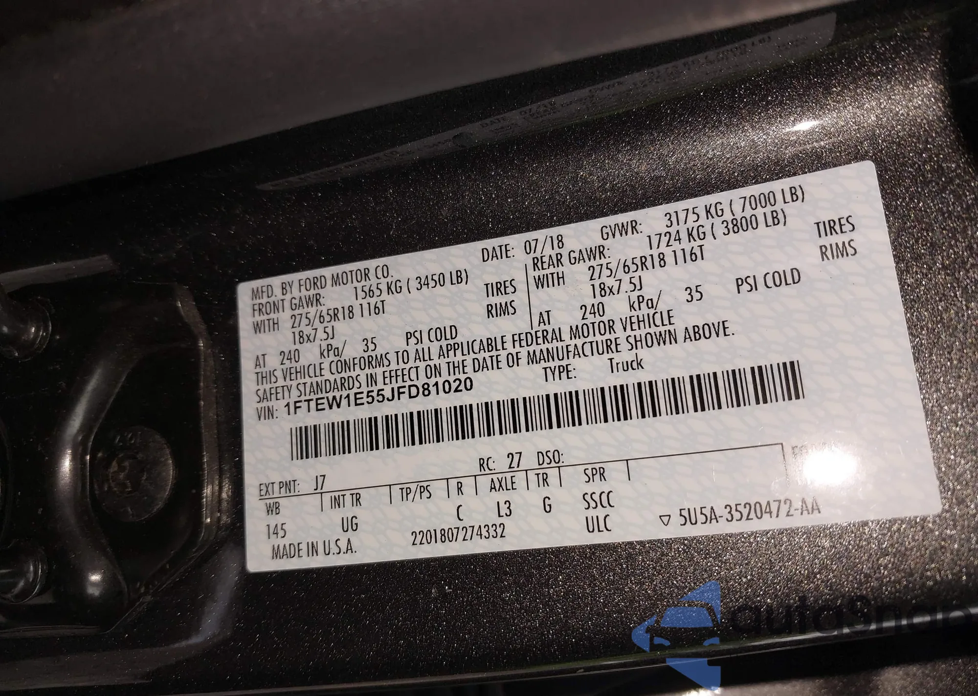 The car Ford F-150 2018 (VIN 1FTEW1E55JFD81020) has not been auctioned before. The documents are clean, and the mileage matches or is below the market average. Sold by an insurance company – we recommend purchase. Delivery to the port will take approx. 6–8 weeks.