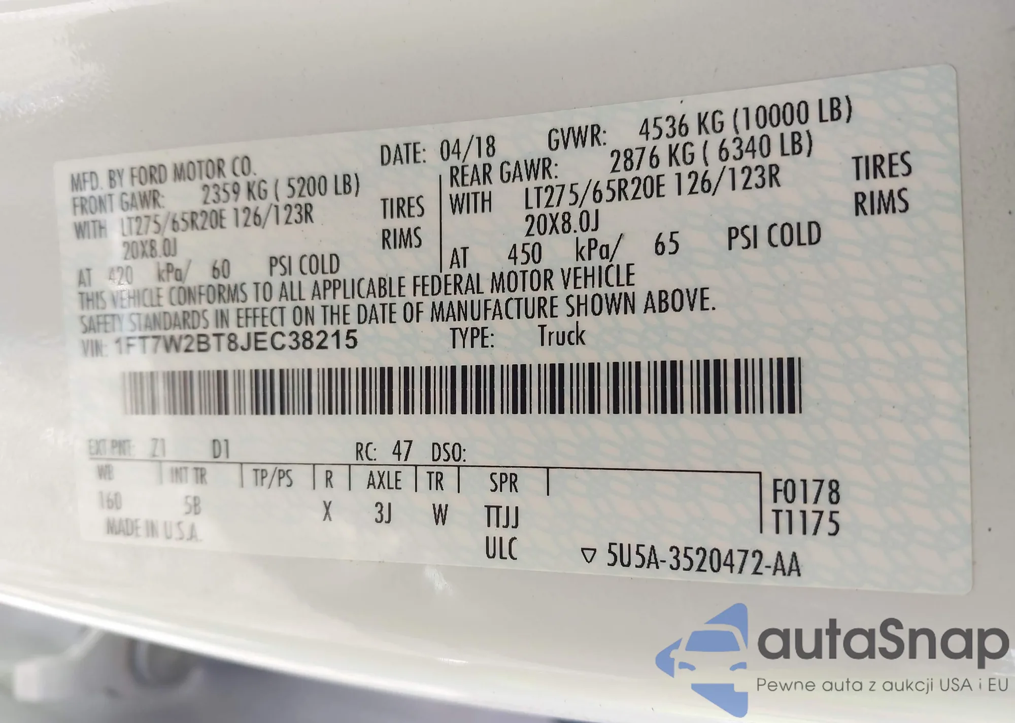 VIN: 1FT7W2BT8JEC38215