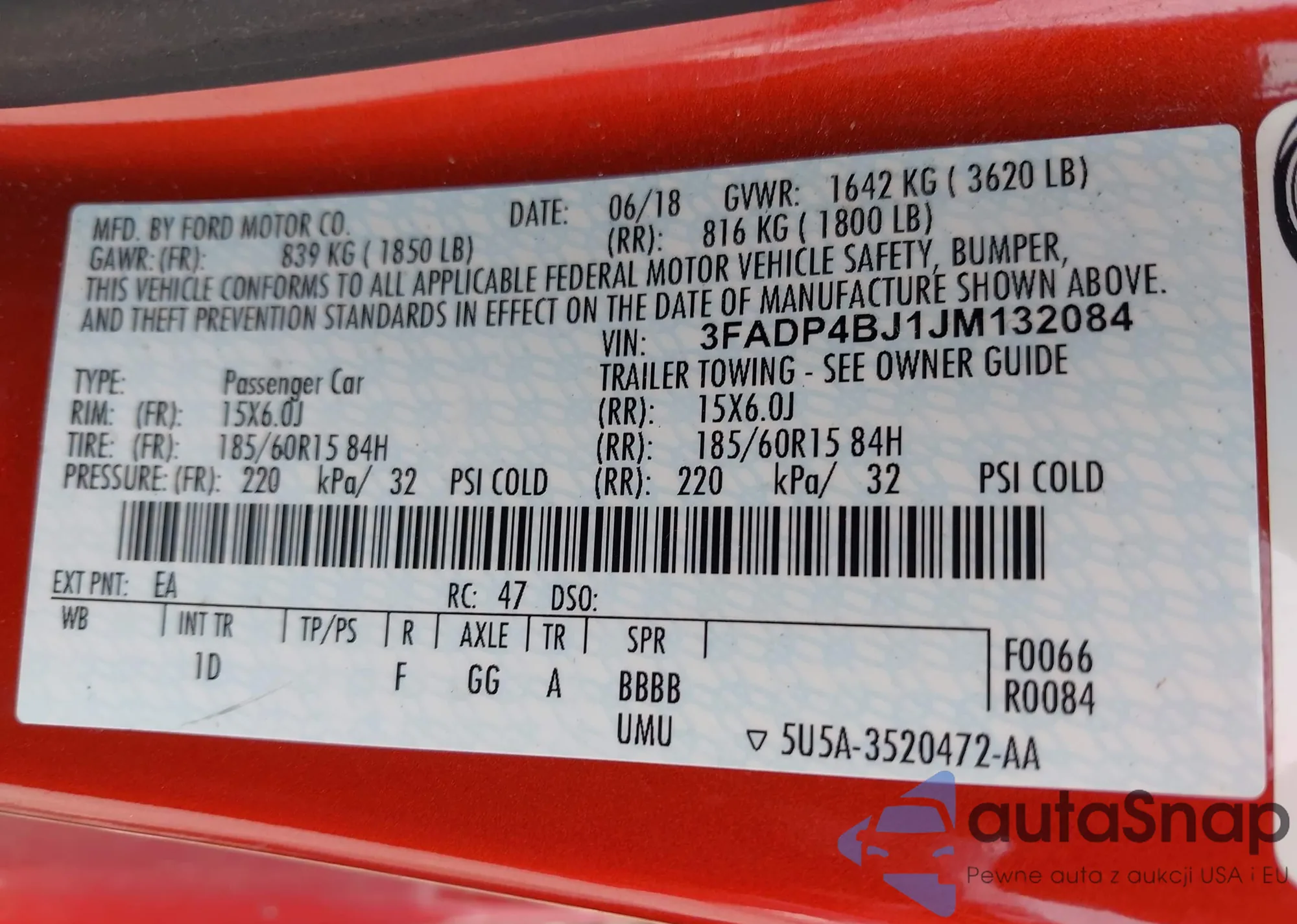 VIN: 3FADP4BJ1JM132084